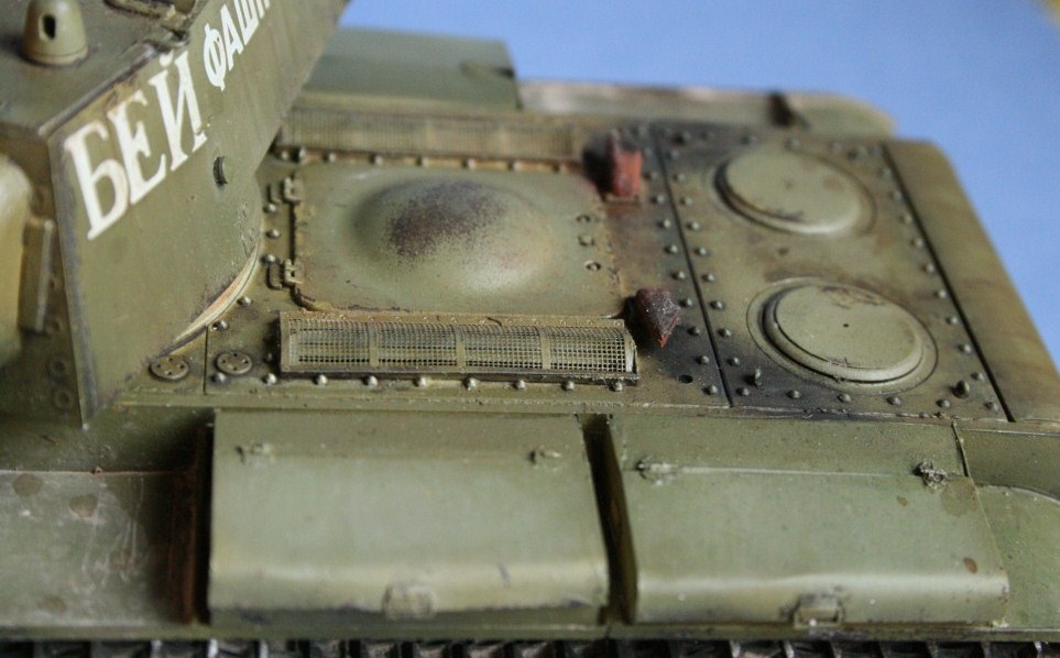 ...Про замечания уже сказали.Добавлю,что не смог рассмотреть сетки на МТО,нет хорошего ракурса для этого.И ещё.Крепления зап.траков на полках хотелось бы документально(я имею ввиду-фото)подтвердить.Я лично видел крепления на КВ с литыми башнями(КВ от ВЭ с креплениями есть в "рассказанных сказках). Крепления достаточно просты,но ДОЛЖНЫ быть!