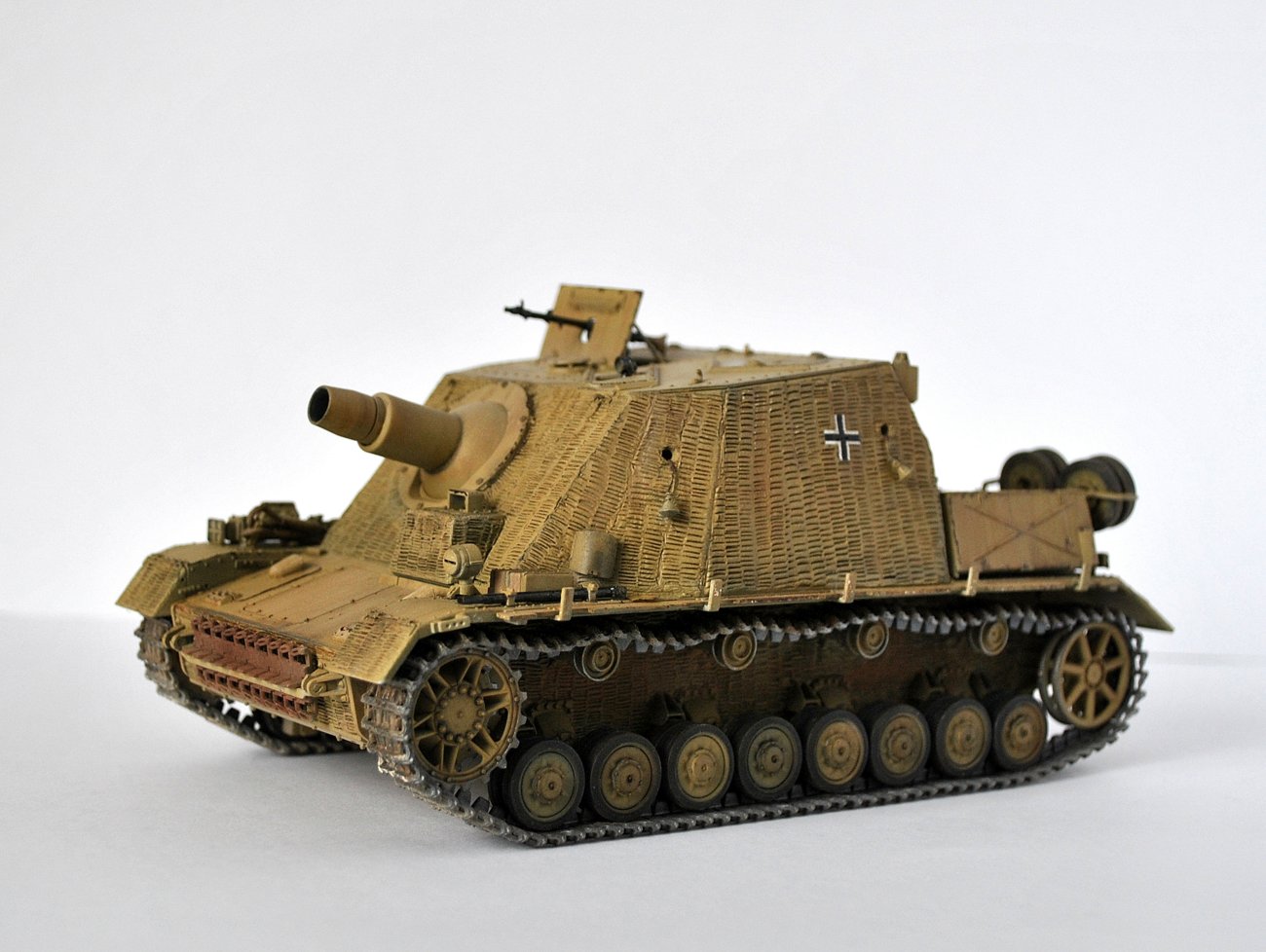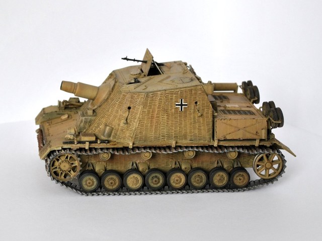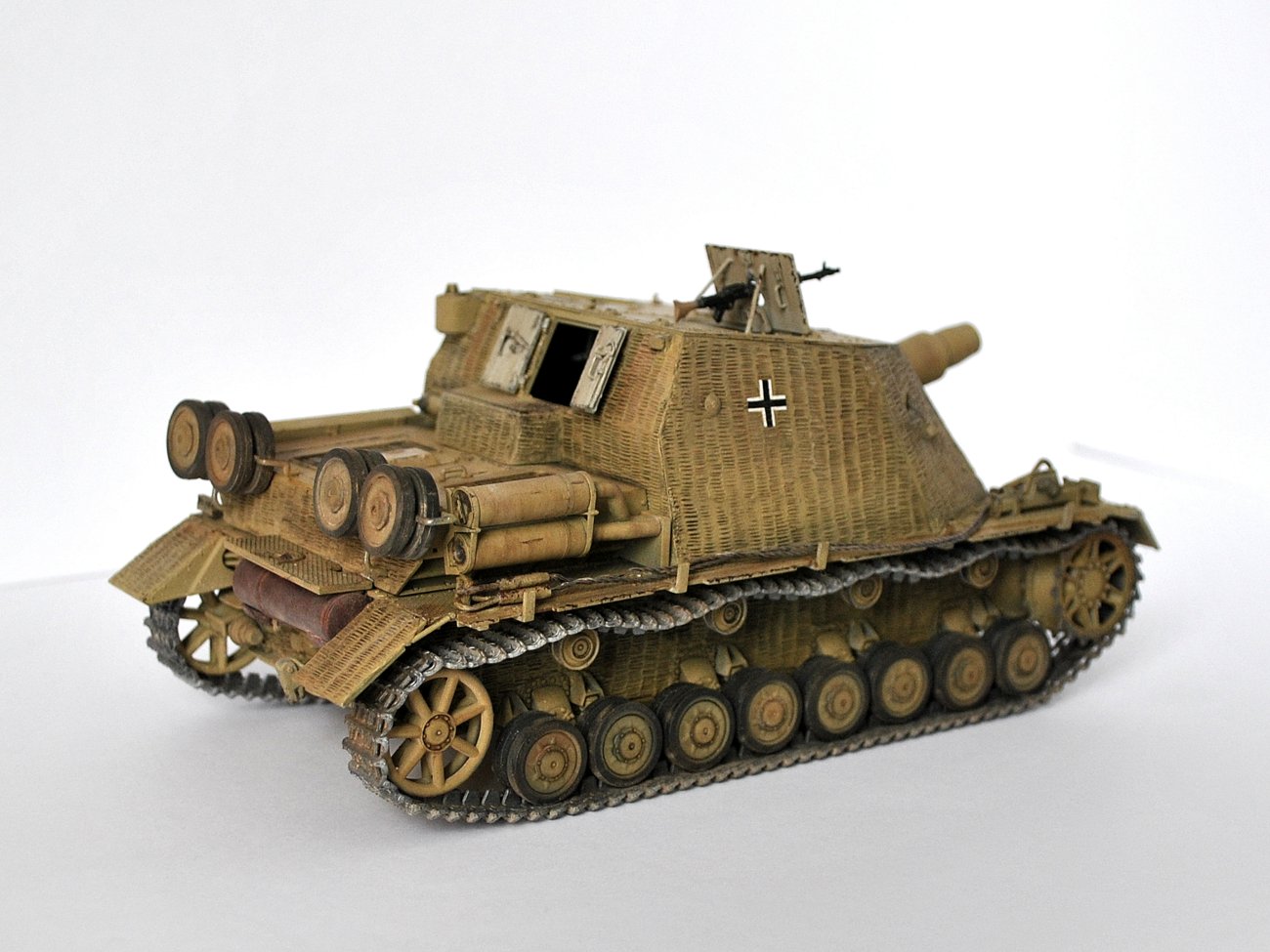 Модель изкоробочная, сделал только циммерит из двухкомпонентной тамиевской шпатлёвки (это был первый опыт нанесения, оказывается это сложнее, чем я думал, 5 вечеров ушло чисто на циммерит).