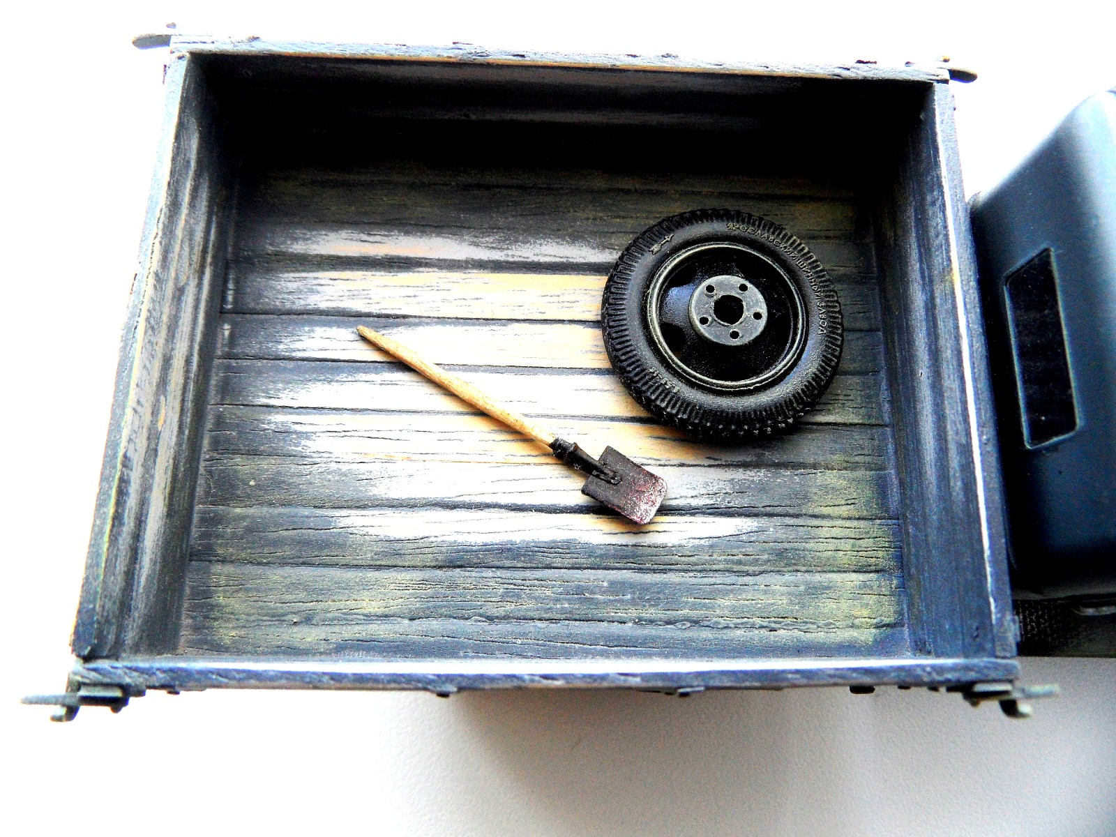 Содержимое кузова показалось мне слишком скудным и решил сделать некое подобие ящика: из литника сделал каркас, накидку на ящик (тент) из салфетки пропитанной ПВА (просто ни разу этого не делал и решил попробовать)
