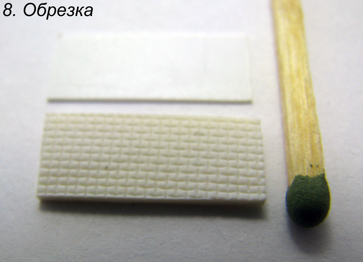 8.1. Берем готовую деталь и приклеиваем её на двухсторонний скотч (естественно циммеритом вниз) к любой устойчивой основе. Я использовал обрезок ламината.
