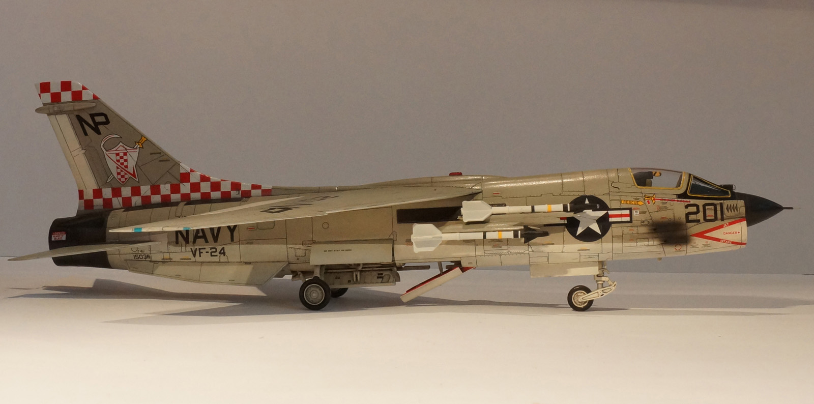 Здравствуйте! Отличный Крестоносец получился. Подскажите пожалуйста, на раннем этапе вьетнамской войны американская авиация могла использовать только неуправляемые боеприпасы, Крусейдеры широко применяли 127-мм НАР Зуни, есть много фото Крусейдеров с этими НАР на фюзеляжных пилонах в однозарядных пусковых устройствах, кто-нибудь делает такие в 72-м масштабе? четырехзарядные блоки LAU-10 - не то.