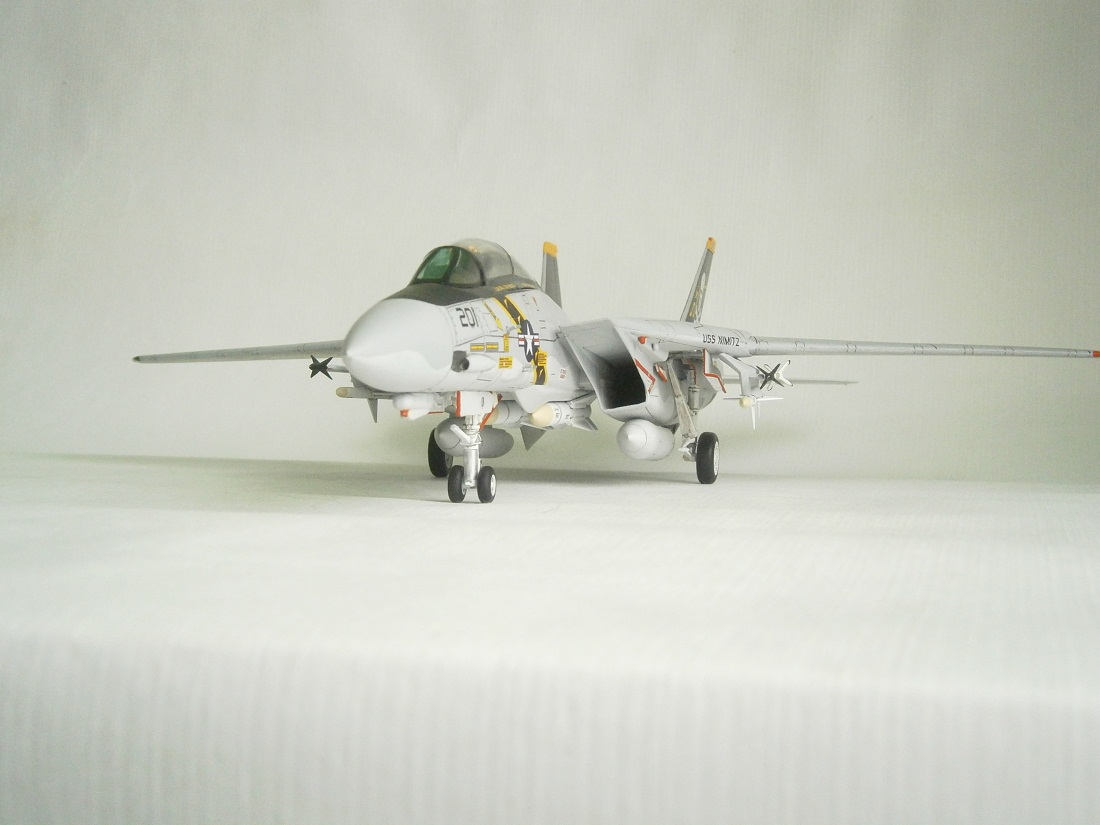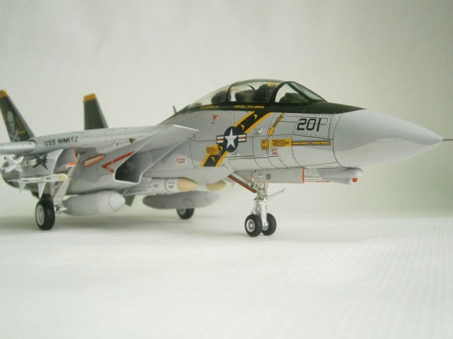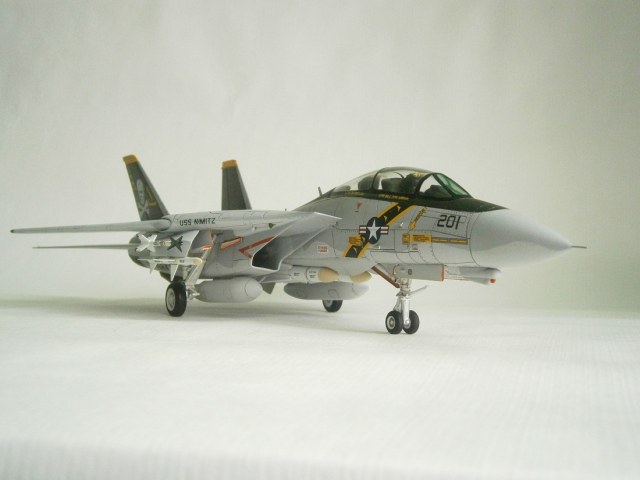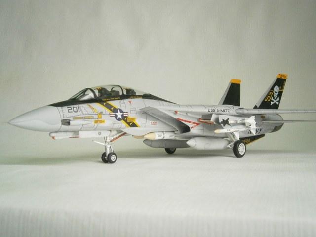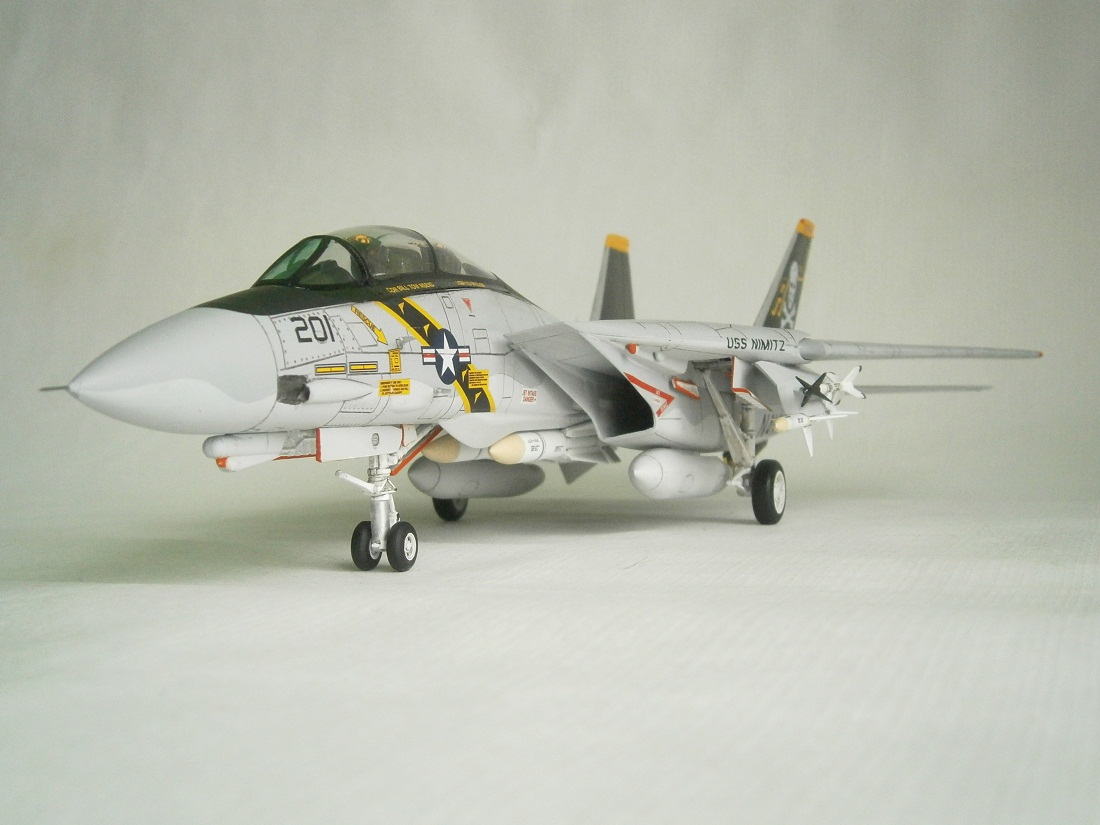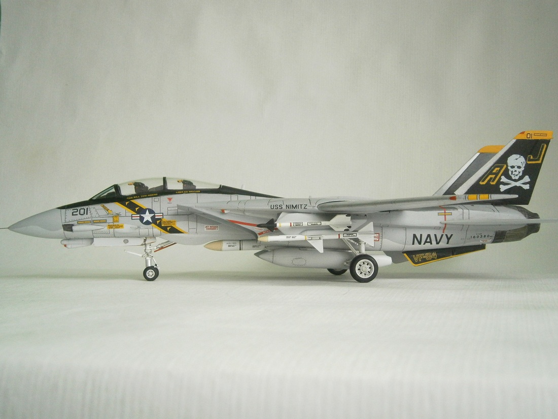 Привет Всем и доброго времени суток уважаемые коллеги по цеху!!!TПредлагаю на Ваш суд модель американского палубного истребителя F-14 A TOMCAT от производителя ITALERY в 1/48 масштабе.При сборке модели от этого производителя,особых проблем не возникало,за исключением при стыковке головной части фюзеляжа пришлось изменить угол чтобы опустить носовую часть немного в низ,также в ходе сборки два раза ломался механизм складывания крыльев,что не очень приятно !!! Пришлось два раза разбирать и собирать модель ,это слабое место у ITALERY. Также в ходе сборки была доработана кабина, и кресла пилотов. Шасси на гидроцилиндры приклеена фольга. Сопла выполнены тонировачными пигментами АКАН .Окрашена модель нитро -краской полностью,мешал сам , затем слой глянцевого лака ,деколь ,затем еще один слой глянца,выделение расшивки акрил+ фейри,и в конце задуто все матовым лаком от TAMIYA.Деколь из набора производитель предлагает три варианта ,я выбрал "Jolly Rogers " В целом наборчик заслуживает твердой четверочки.Желаю Всем удачи и успехов .С уважением Дмитрий !!!