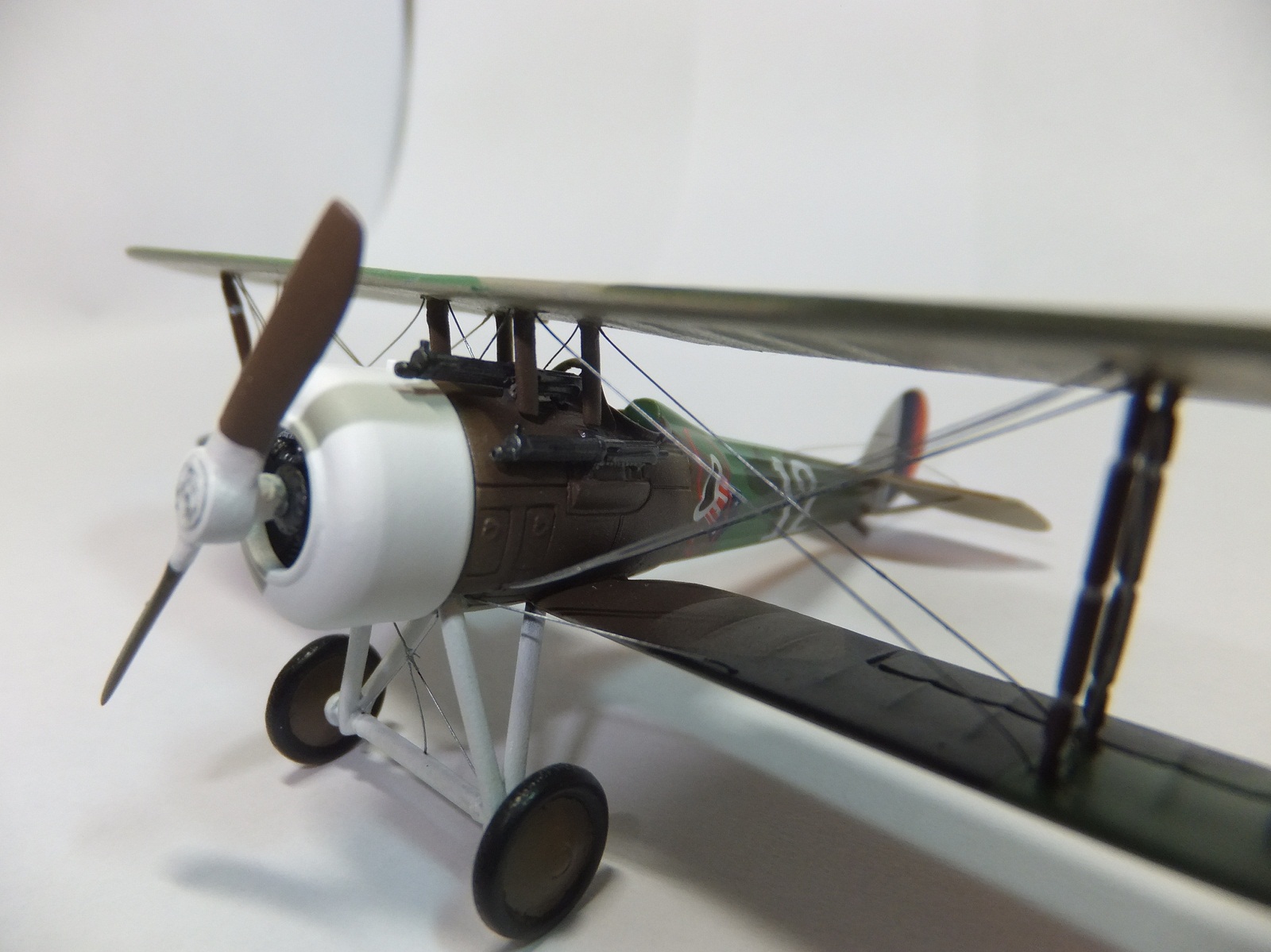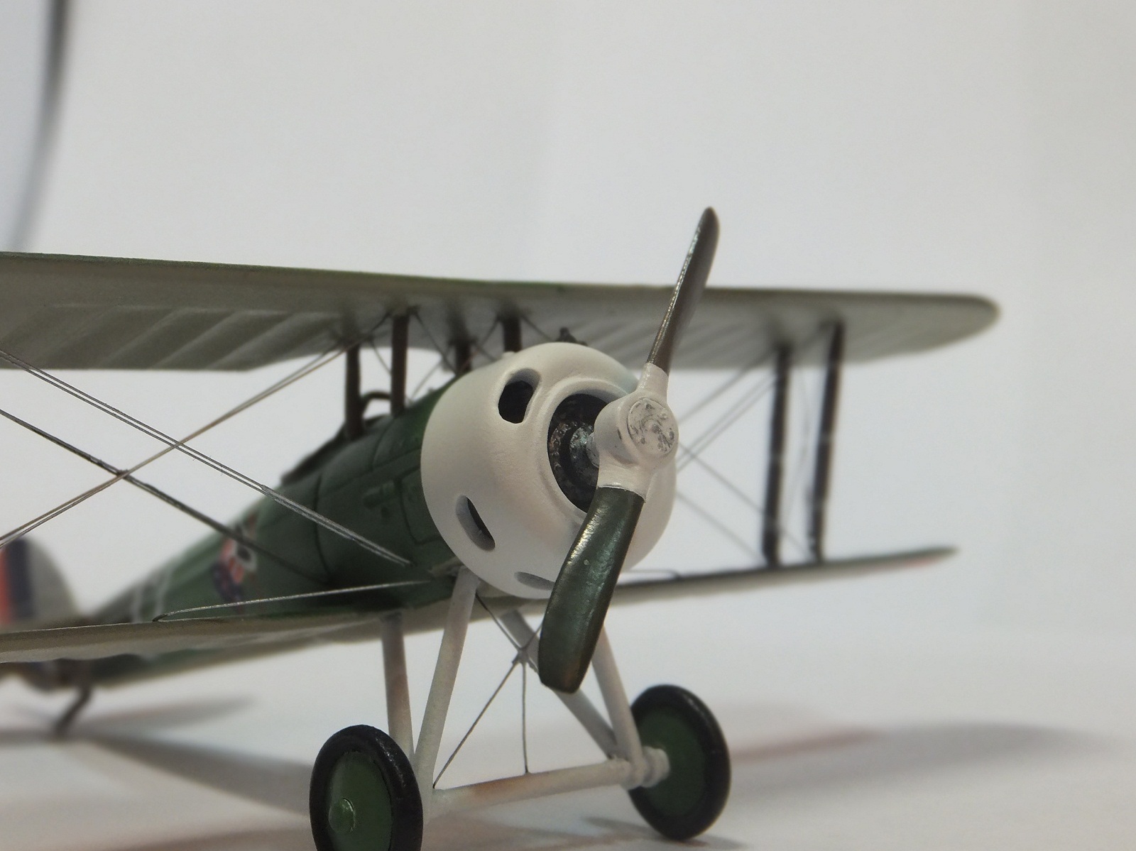 Интересная модель, и получилась хорошо! Но немного критики с моей стороны. Ощущение, что растянут леской, а не мононитью- в местах вклейки видны изгибы растяжек. Толсто смотрится капот, на кромках капота и окон стоило сточить пластик "на острие". То-же о козырьке- на прототипе окантовка плоская.И не стоит пренебрегать кабиной и её деталировкой- на открытых кабинах самолётов ПМВ это видимая часть, придающая зрелищности модели. Нет фото снизу.Удачного моделирования!