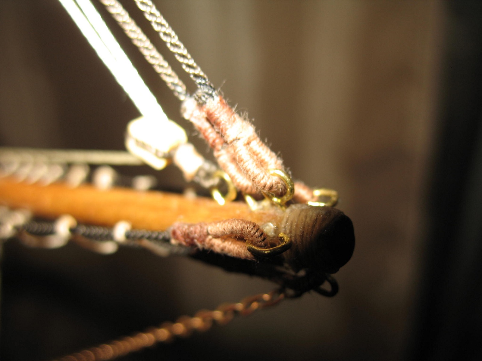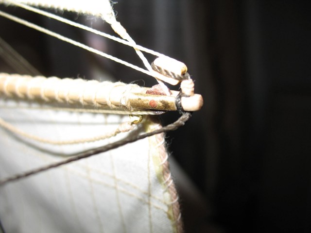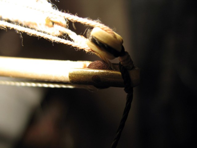 Нити из набора использовал только светлые для бегучего такелажа, остальные в наборе одинакового черного цвета разного диаметра.