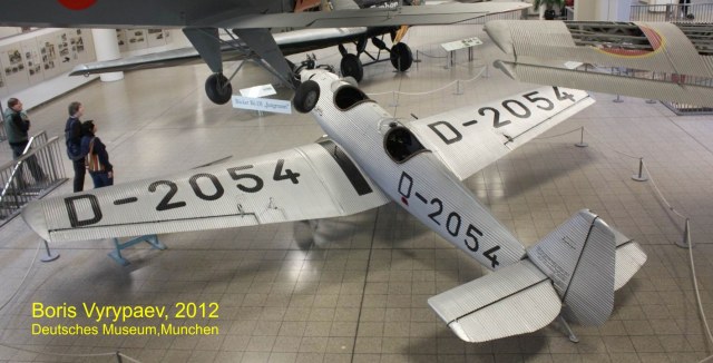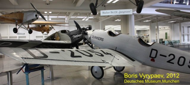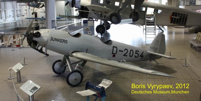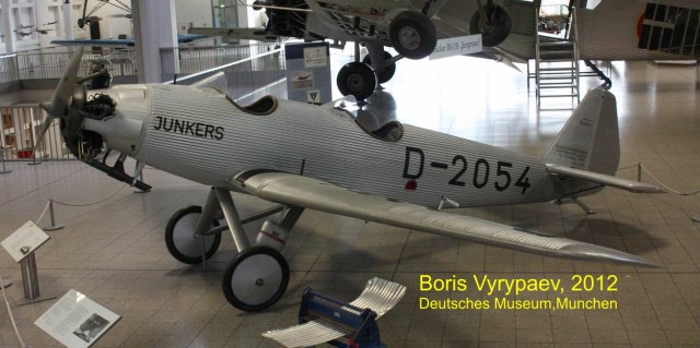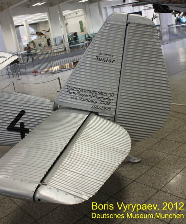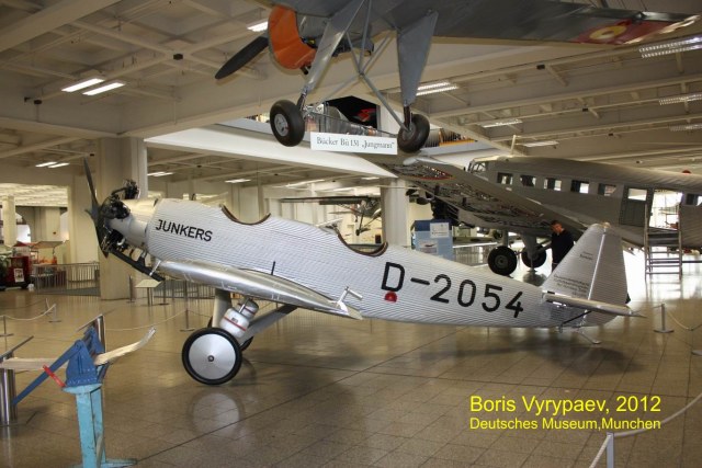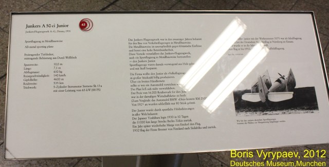 Очередной экспонат - Junkers A50 Junior - легкий спортивный самолет, разработанный немецкой фирмой Junkers Flugzeugwerke. В конце 20-х годов конструктор Арнцен предложил Хьюго Юнкерсу проект цельнометаллического спортивного самолета. Первоначально к этому проекту отнеслись скептически, считаю что металлический самолет не сможет на равных соревноваться с легкими самолетами с тканевыми или деревянными фюзеляжами. Юнкерс передал этот проект, получивший обозначение EF31, конструктору Полману.