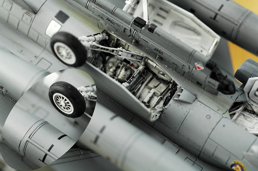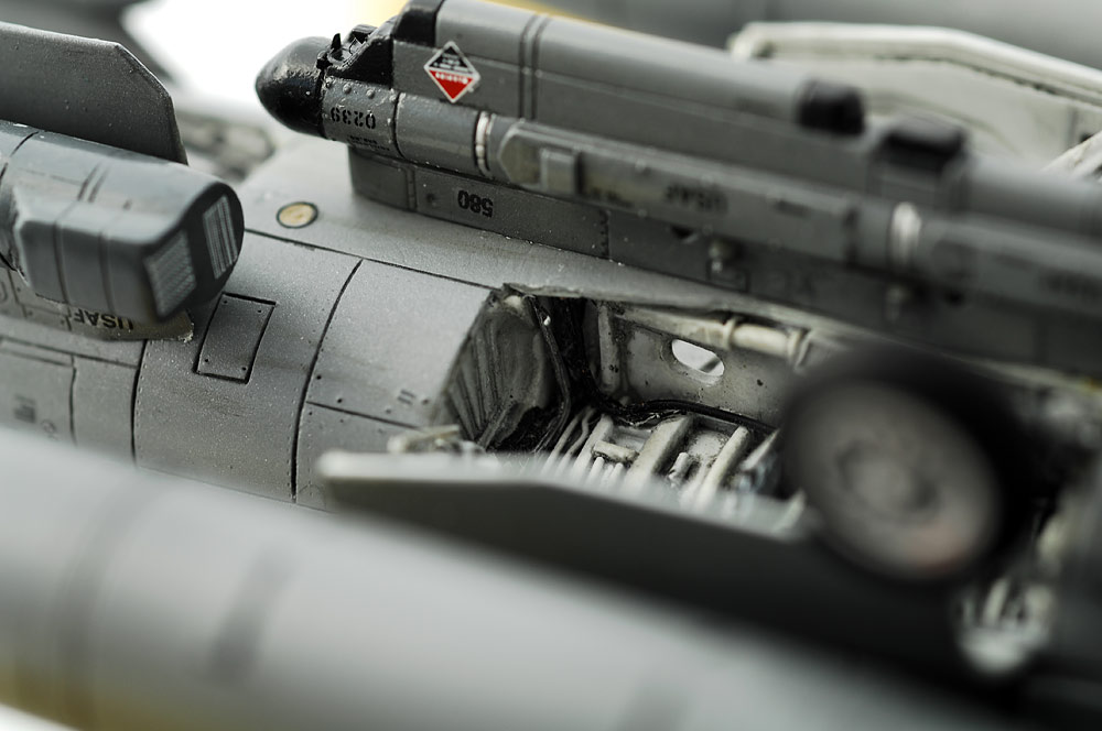 Модель собиралась, можно сказать, из трех... Основой было изделие от ревелла, но часть деталей взяты от Академии. Ещё была декаль от хасегавы.. от туда взято пару элемнтов. Поскольку смолы для ревелла не было.. взял кабину для японской детали.. Ниши доработал родные. Сопло наборные. Труба, аиерес, стабилизатор пламени, травло от эдуарда, и бочка от фольфпака. Крой пришолсь менять только в районе киля. Собиралось всё с минимальными проблемами. Красил нитрой. Вернее нитросмесью.. Дело в том, что сейчас американские самолеты красят краской, содержащую металл. Так намешал краску НЦ и гунцевский металик. Тонировавл всякими способами. От прейшепинга, до легкого фильтра. Декали наборные.. В основе были академические, но дооснащал и из набора ревелла и от микрошкайла и от хасегавы..