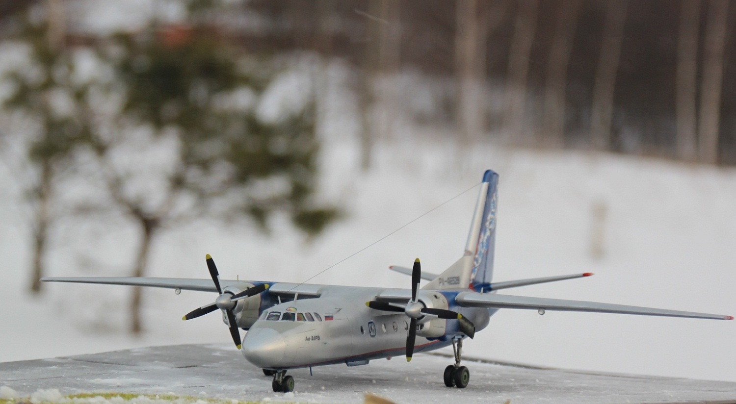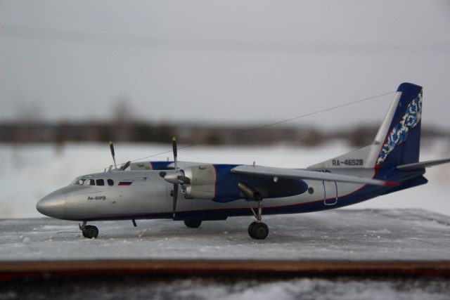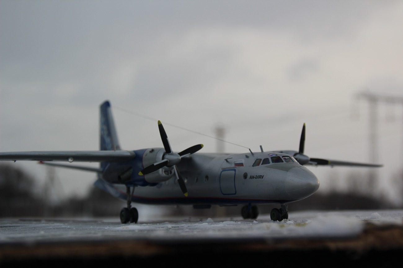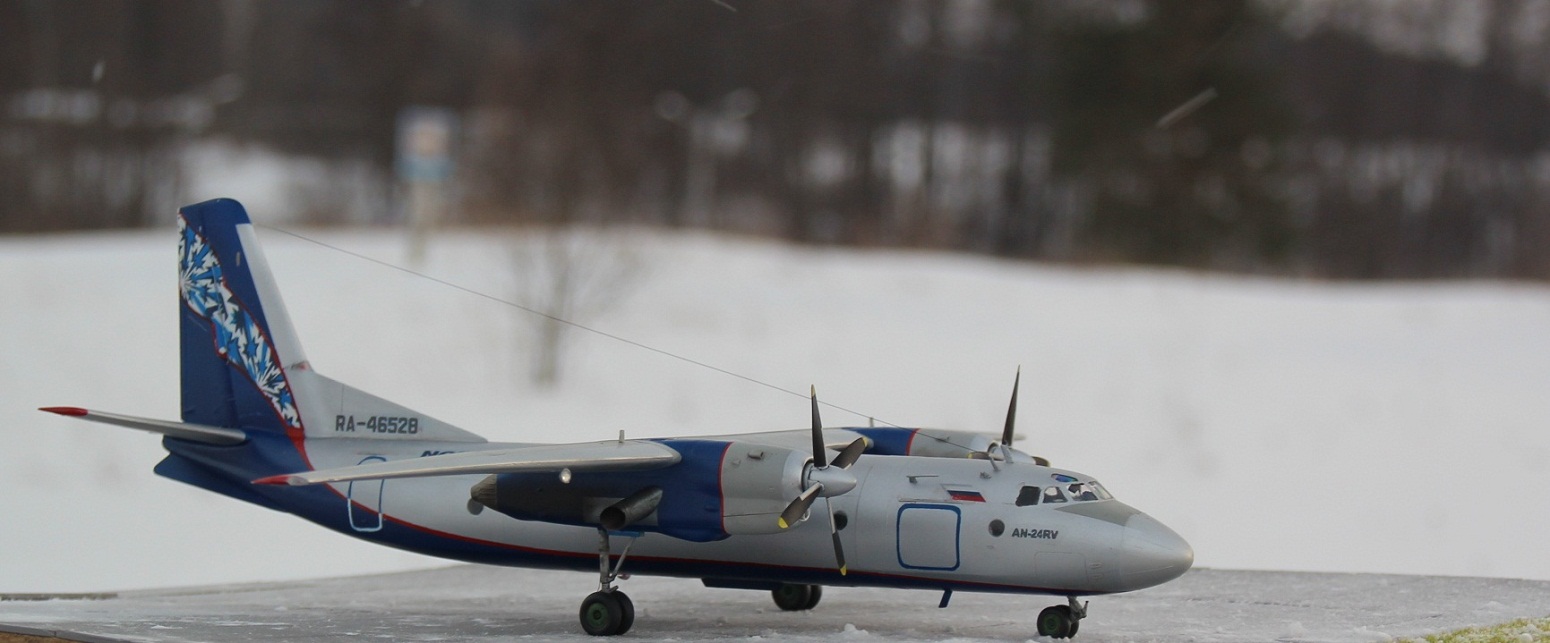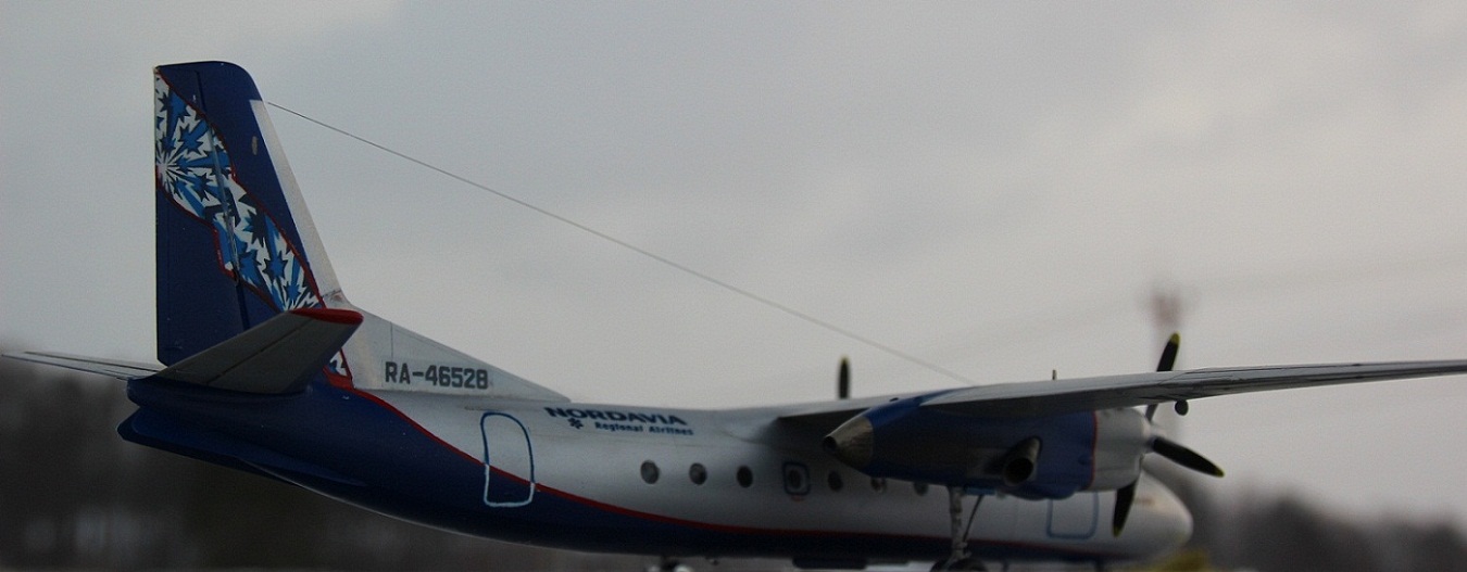 Здраствуйте уважаемые коллеги!!!Представляю Вашему вниманию мой долгострой, Ан-24 авиакомпании " NORDAVIA" который давно хотелось иметь в коллекции .В связи с отсутствием декалей,решил изготовить их самостоятельно на струйном принтере.Сборка особых трудностей не вызвала,а вот остекление кабины пилотов на свое место вставать не хотело а переплёт уж больно мелкий.После покраски самолет подвергся наподению моего кота бандита,который его скинул с полки в следствии чего он разлетелся на куски.Возник вопрос стоит ли востанавливать его или нет,но всеже решил не выбрасывать и началась работа заново уже с меньшим энтузиазмом,что и привело к долгострою.Красил из аэрографа красками и лаком Акан. Желаю всем приятного просмотра.