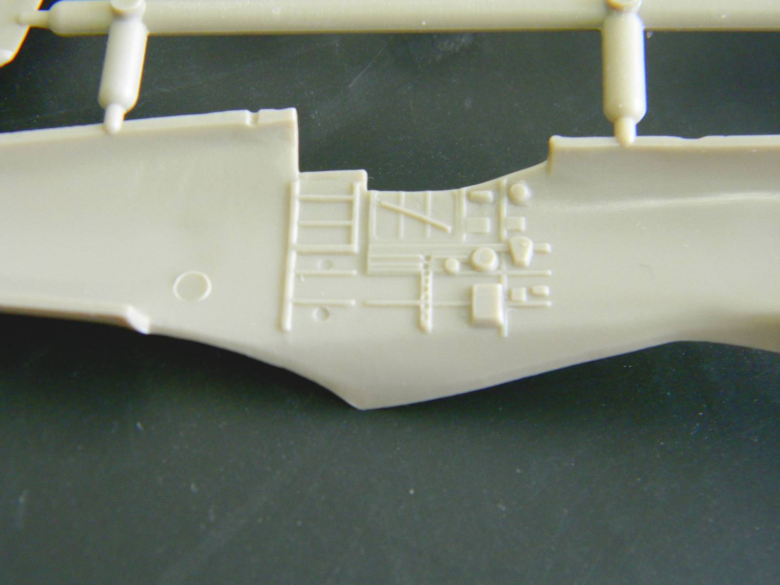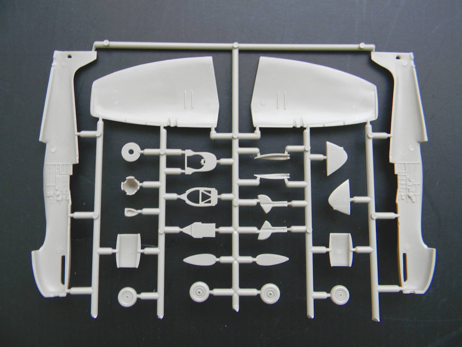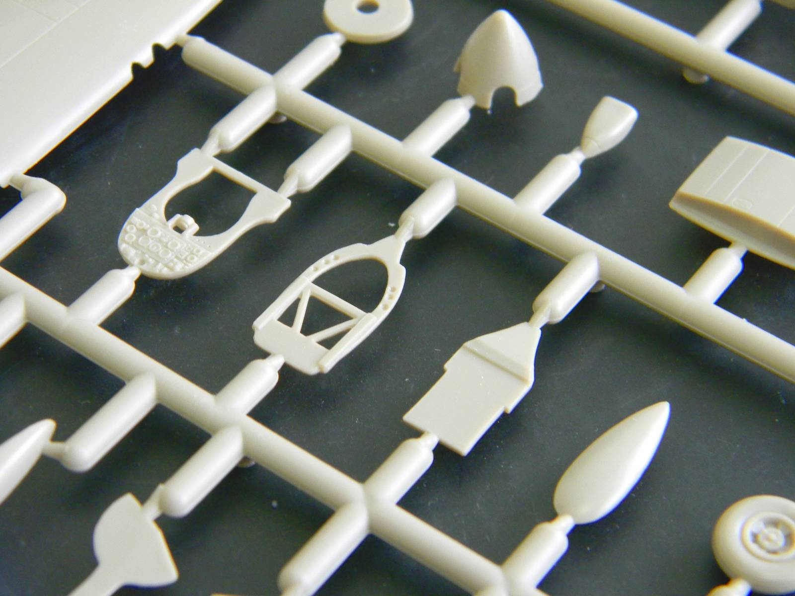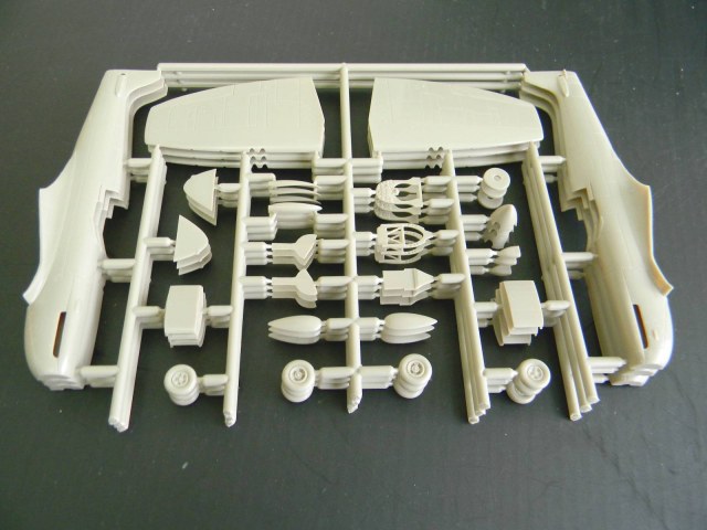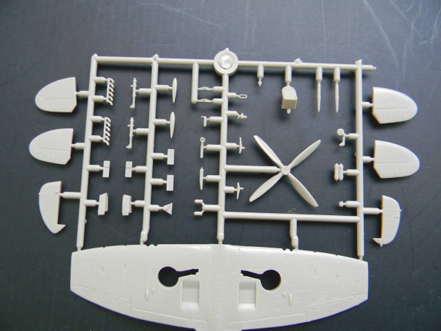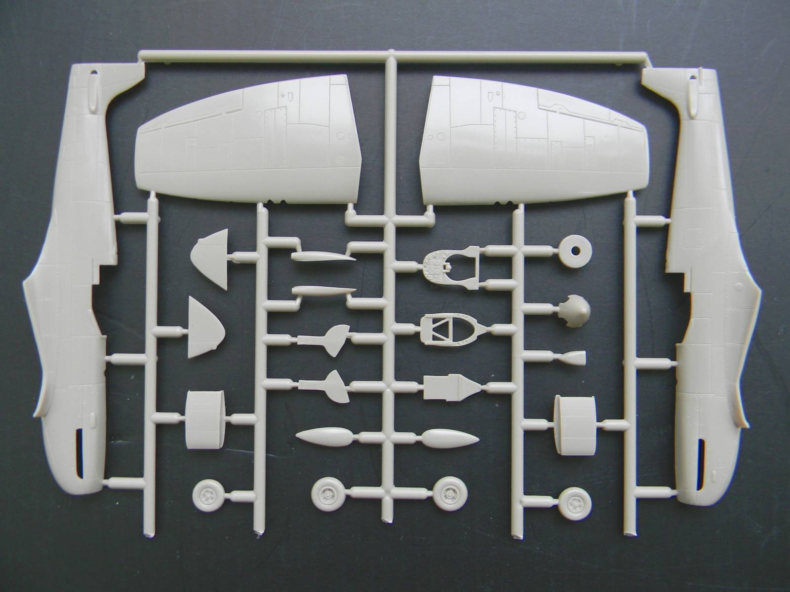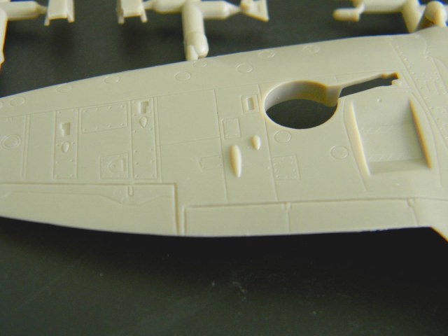 Перейдем к пластику. Отлита модель хорошо, ни облоя, ни утяжин я не заметил. Расшивка, хотя и мелкая, но четкая и не замыленная. Подробный кокпит, ниши шасси, два варианта руля поворота; обтекатели пушек даны отдельно, можно сделать разные варианты крыла. Фонарь тонкий и прозрачный, но купание в футуре не повредит. В чертежи не вкладывал, ежели кто исследовал данный кит, пожалуйста, отпишитесь.
