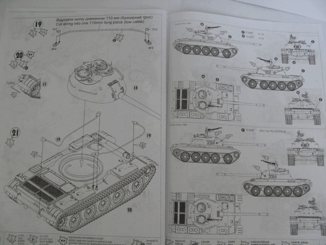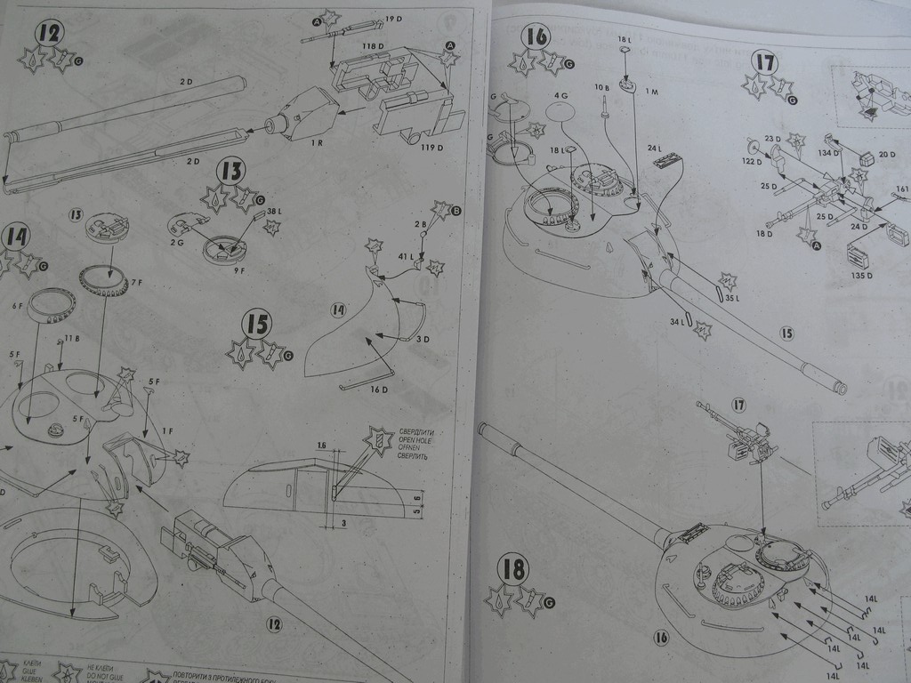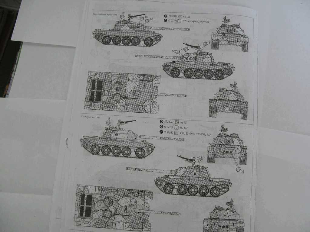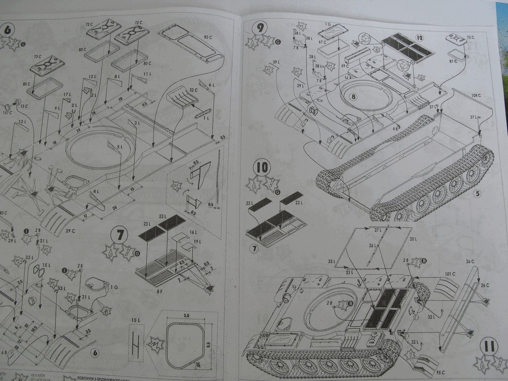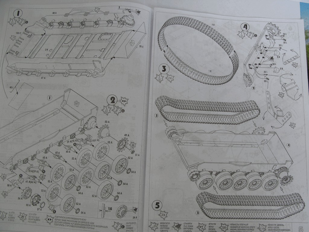 Детали пролиты на 4- есть утяжены,облой.Стыкуемость плохая придется пилить,темно-зеленый пластик убогий,очень сильно слоится и крошится,неплохо пролиты катки.Инструкция понятна.Декаль на 4 варианта: советская,чехословацкая,польская и финская.