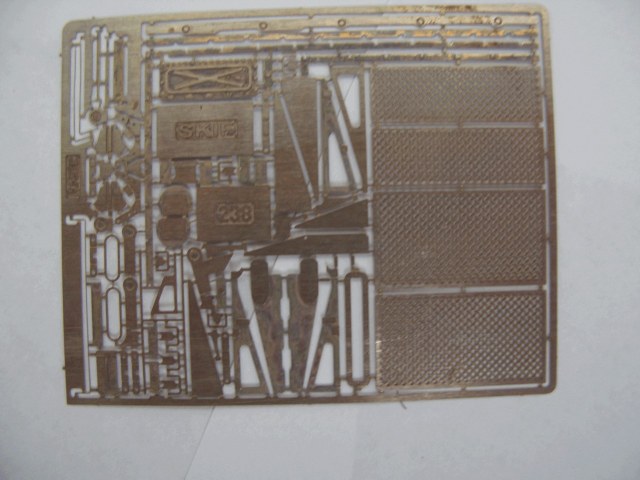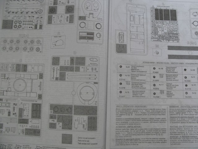 Открыв коробку мы найдем 9 литников с деталями,4 с гусеницами,плату травления,смоляную маску.инструкция,декаль.