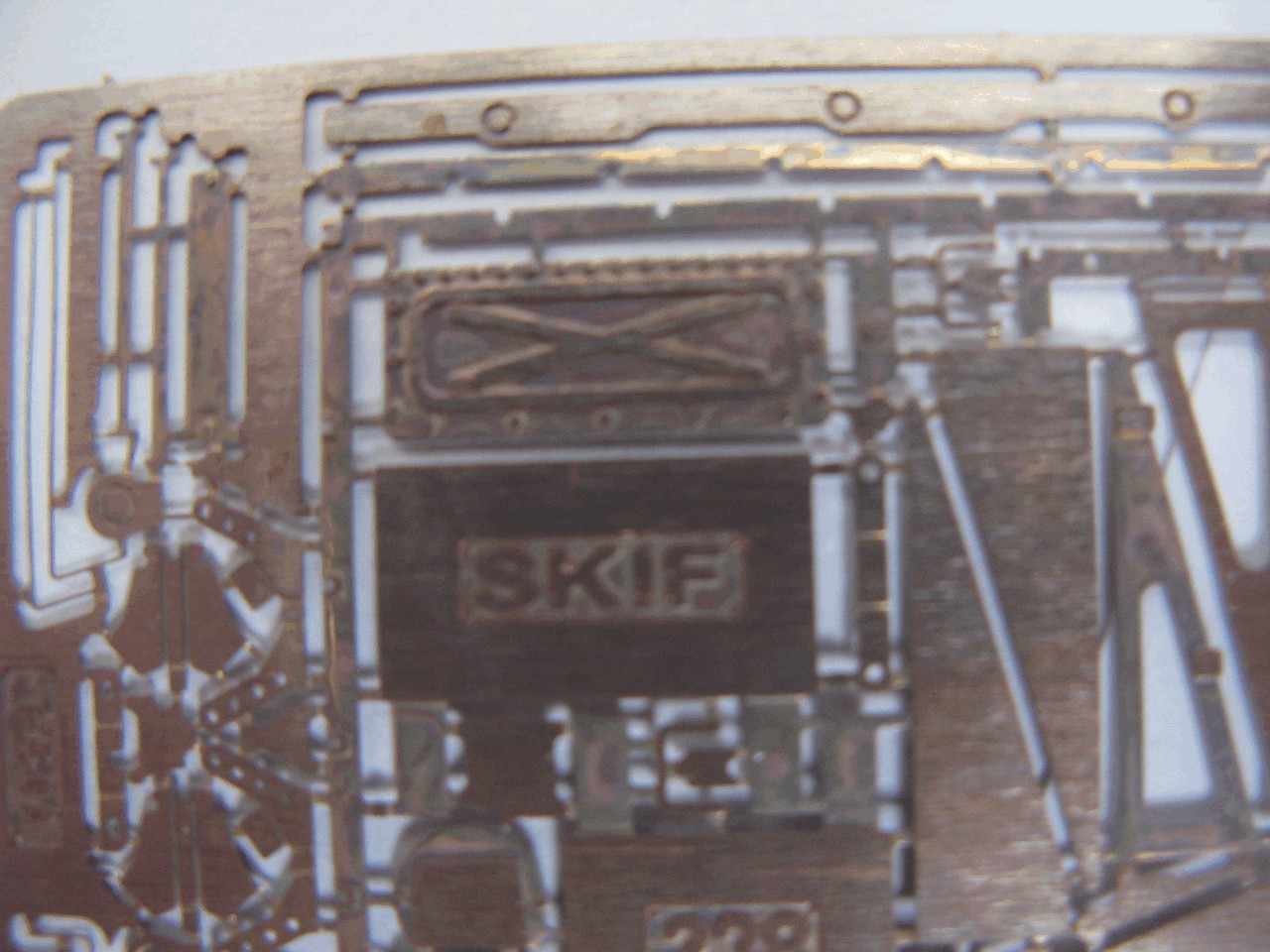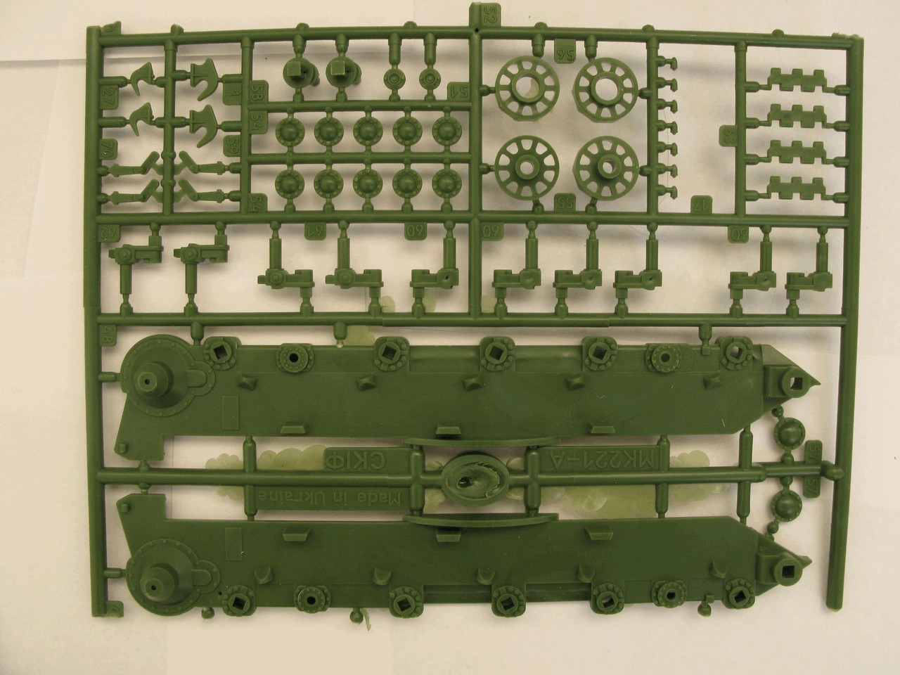Пластик на конверсионных деталях и правда другой. В МТ-ЛБ6мб (тот что модулем с БТР-80А) такой же. Клеймо на литниках не скифовское, кто-то для них новые формы сделал.