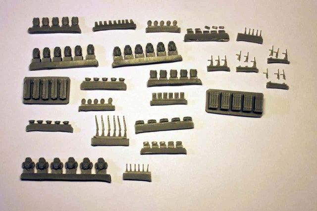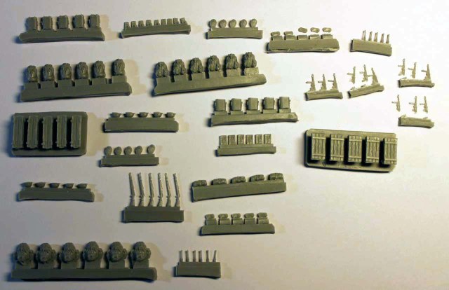 Набор включает двадцать три смоляных литника с ящиками, рюкзаками вещмешками, касками, кепками, двумя видами термосов, с открытой и закрытой крышкой, винтовки кар-98, автоматы мп-40, гранаты, подсумки и т.д. подробности надеюсь можно разглядеть на фото. надеюсь обзор будет полезен.