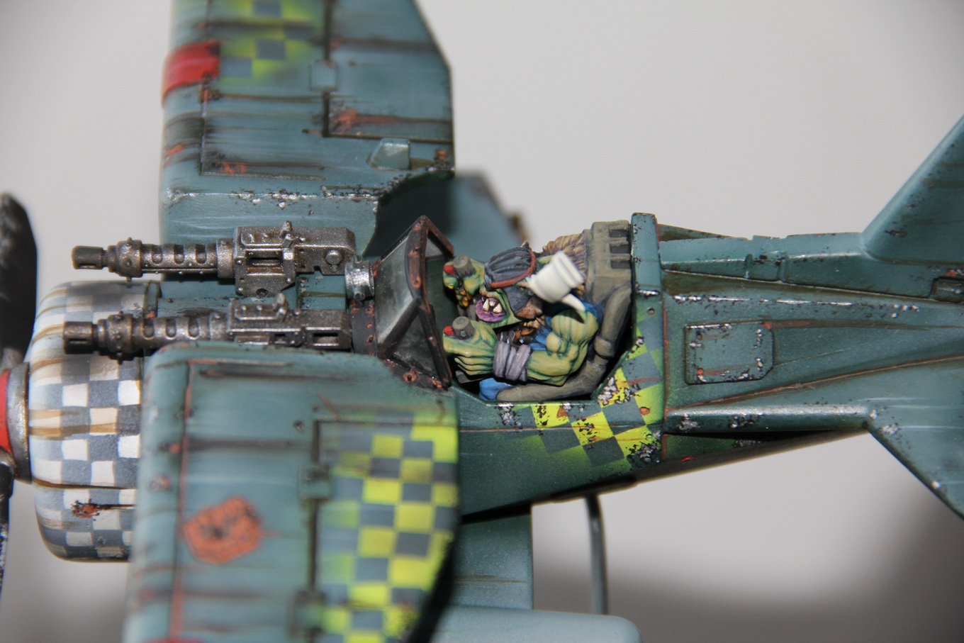 Как видно из названия за идею был взят И-153 .Покраска- роспись моя Изначально планировалось покрасить модель в стандартную тему СОВЕТОВ,но в процессе решено было сделать конкретно под орков.