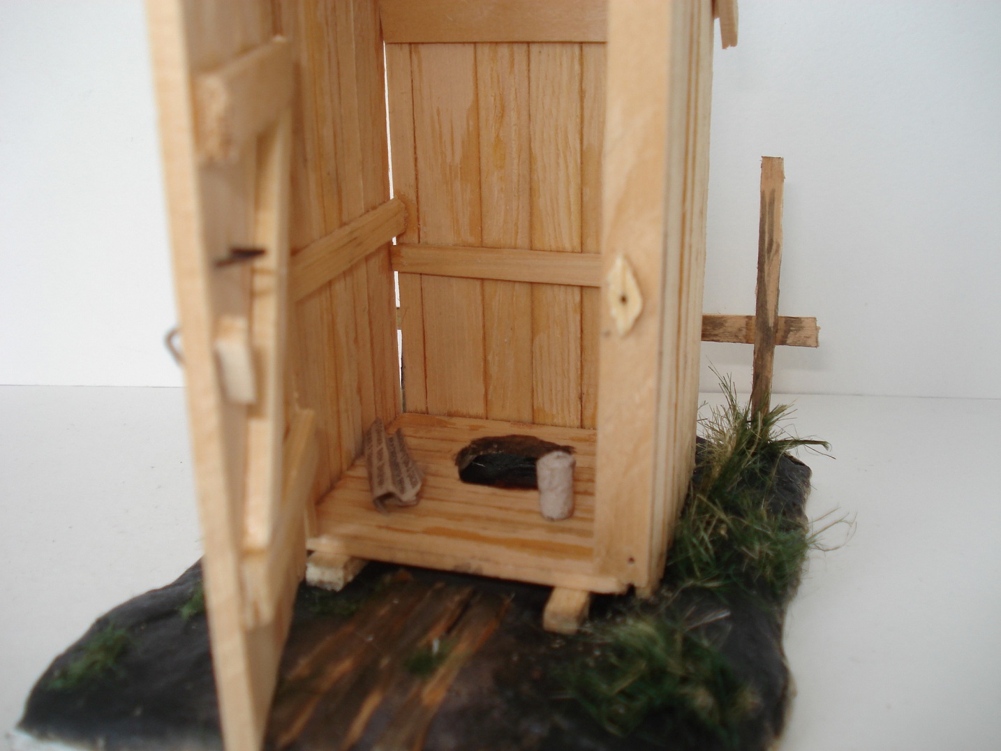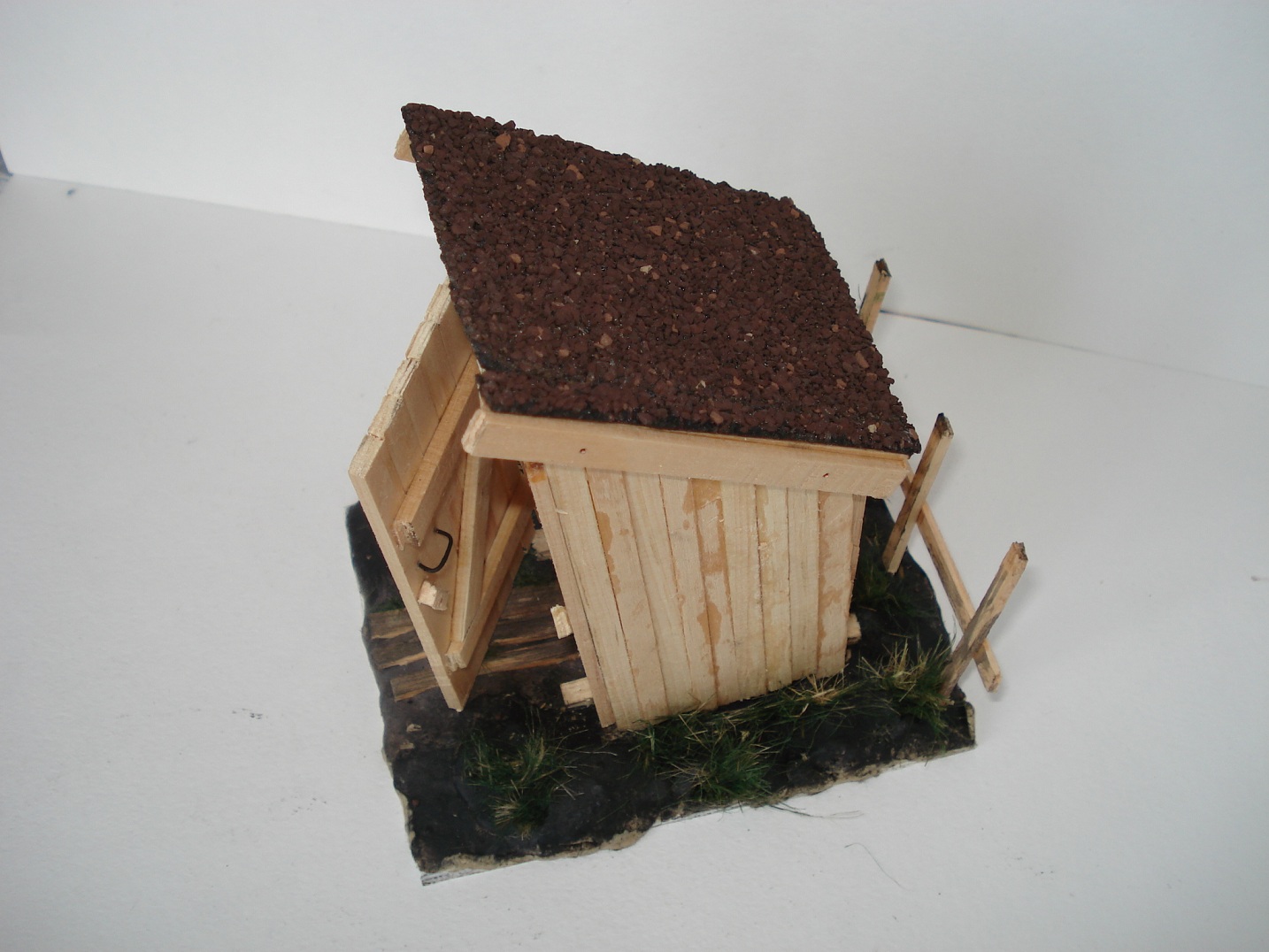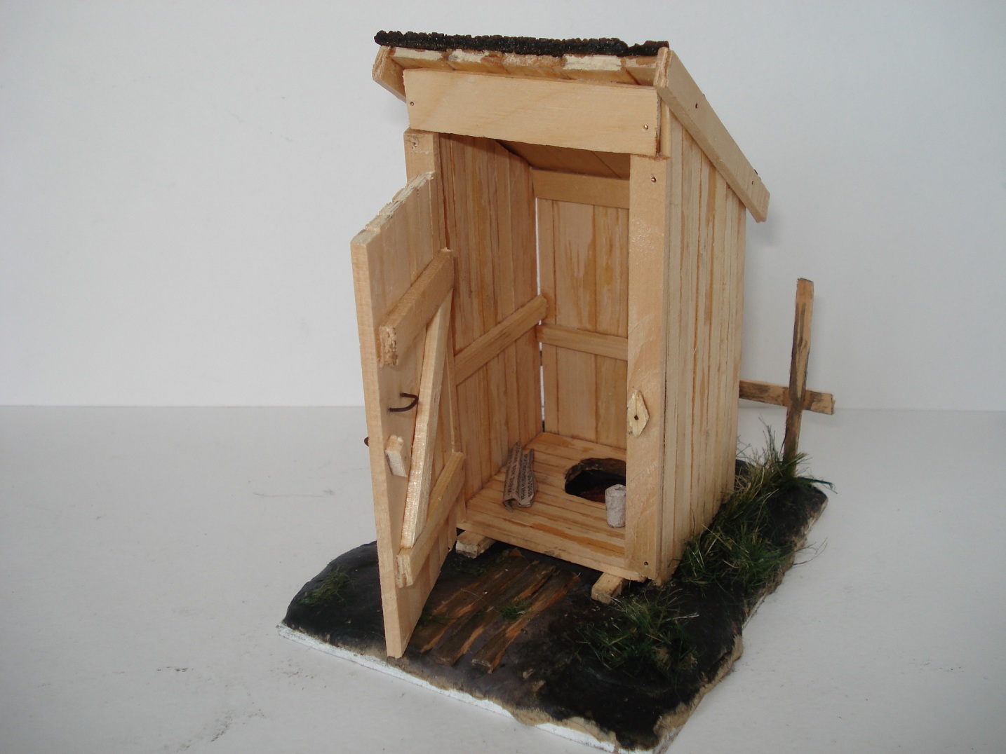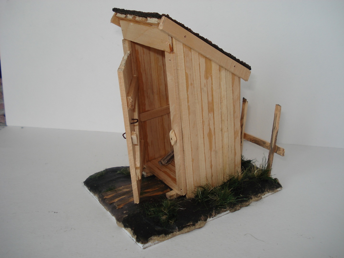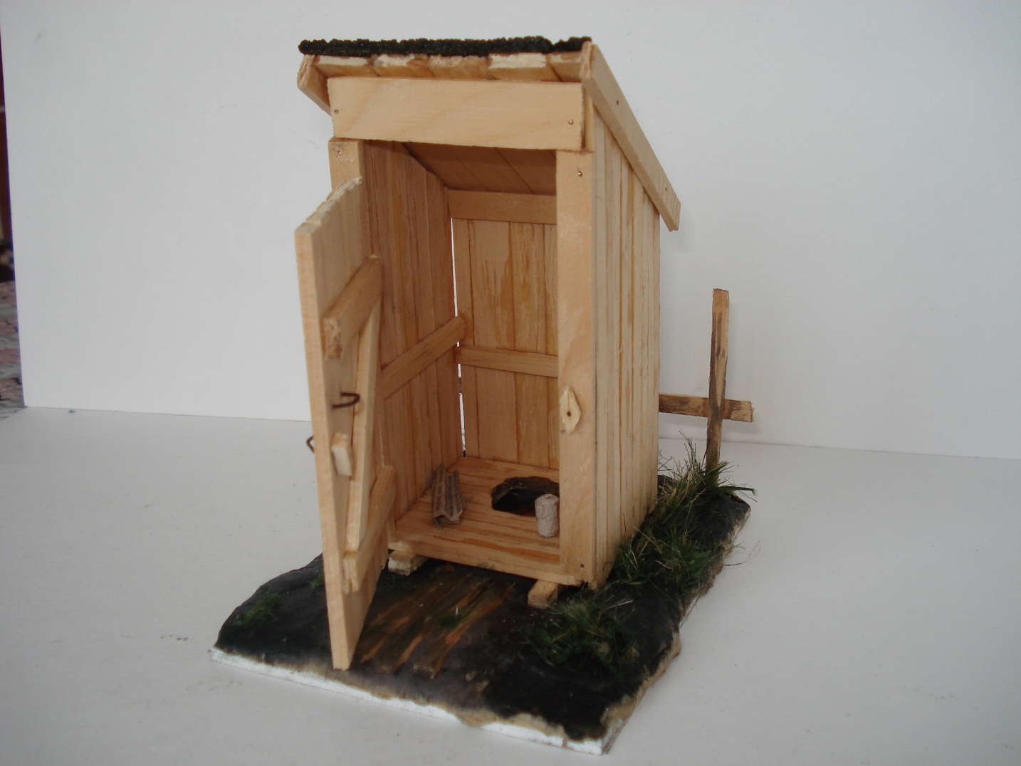 Доброго времени суток, коллеги.Решил немного отойти от БТТ и сделать классический сельский туалет!=) основа-рейки деревянные, гвоздики - проволока, бумага туалетная - бумага туалетная, дерн на крыше - кусочек рубироида, основа - жесткий пластик, земля- пластика, трава -сантехлен. Всех знатоков матчасти и желающих обсудить мою модель милости прошу! На данном сайте уже был выложен похожий экземпляр.