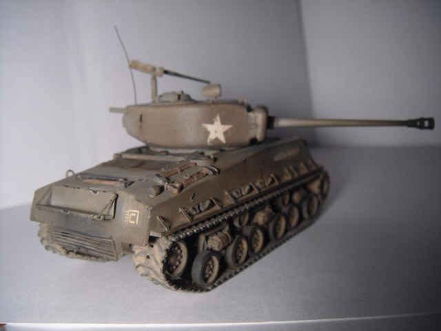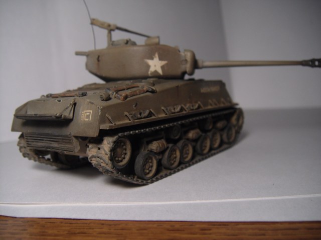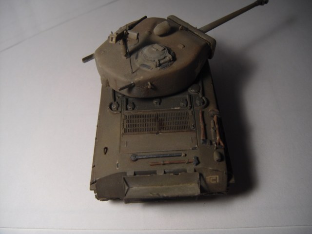 Модель не очень хорошего качества, но собирать можно. Сильно напрягла только ходовая часть. Сделал фактуру литья на маске орудия, башне и нижнем бронелисте. Доработал модель травлом из коробки, проволокой и жестью. В связи с утратой прожектора на башне, вылепил новый, из эпокселина.