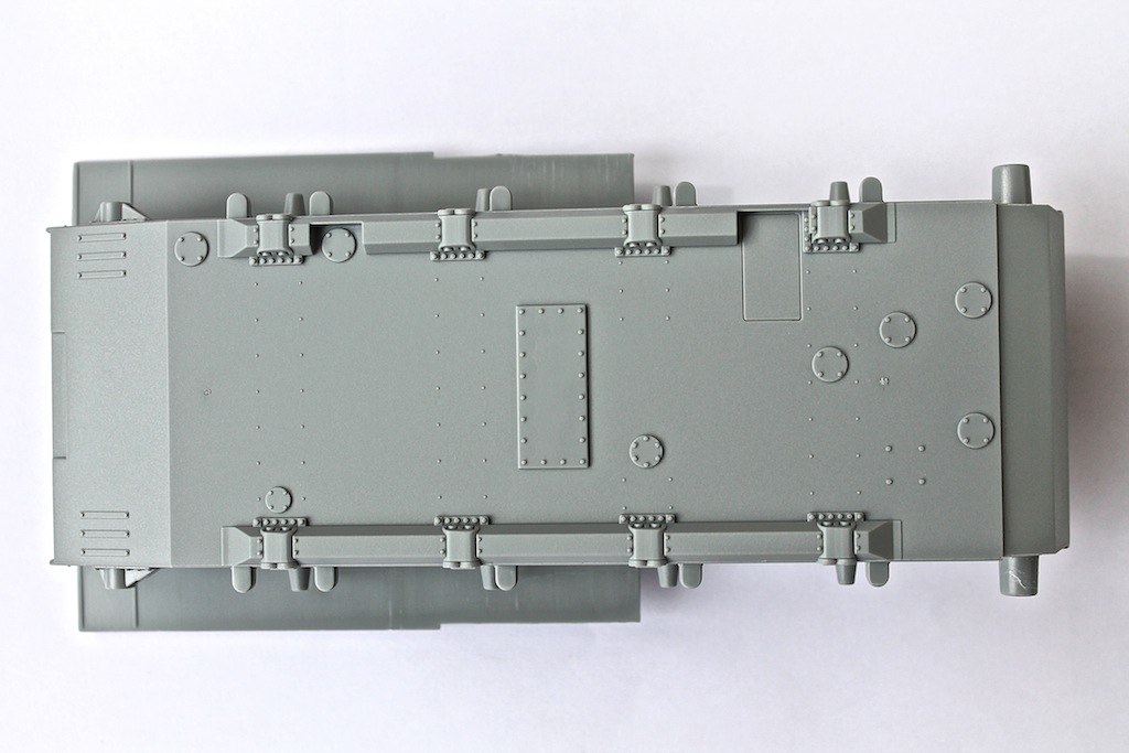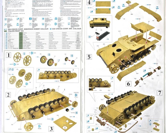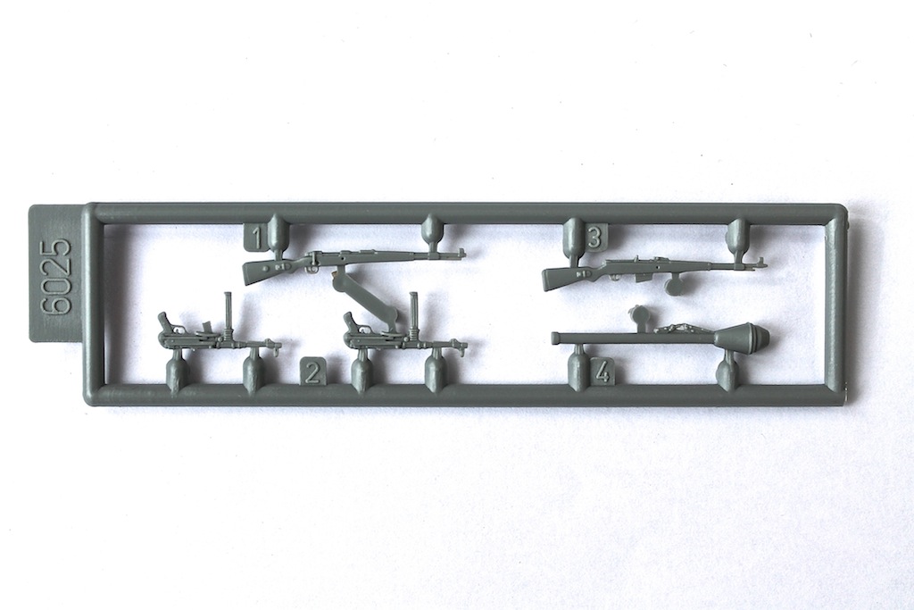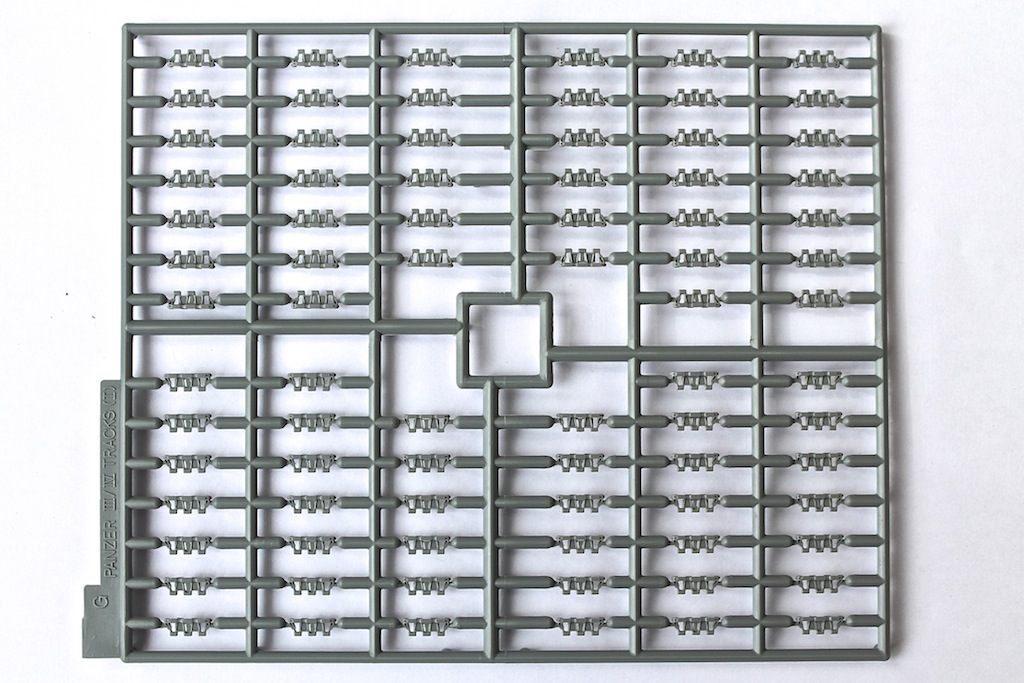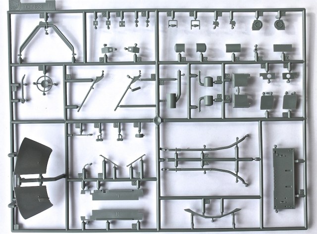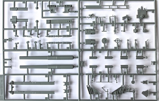 Hummel-начальное производство. Хороший набор, но без травления. 19 литников с деталями, плюс три с наборными траками. Траки нормальные, но как водится, на каждом сзади по два толкателя. Ствол из двух половинок и по-этому, уже давно, куплен Jordi Rubio. На мой взгляд, травлением можно не дорабатывать, если только по мелочи т.к. детализация на уровне. Производитель предлагает два варианта окраса : Hoenstaufen и неизвестный юнит.