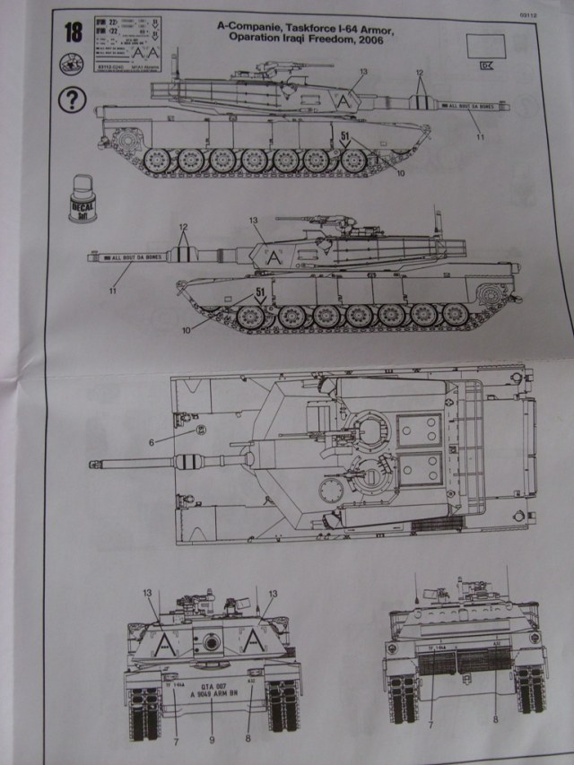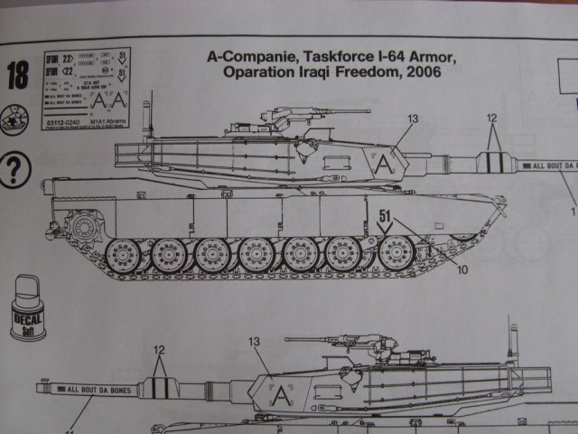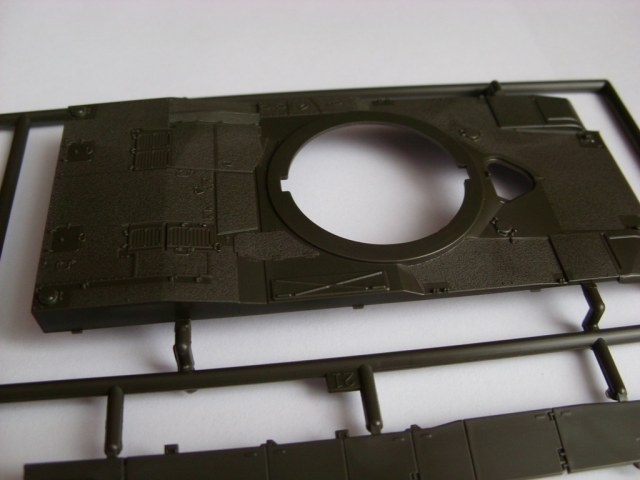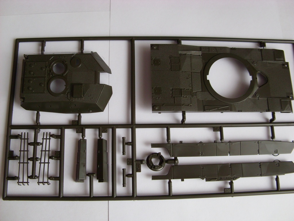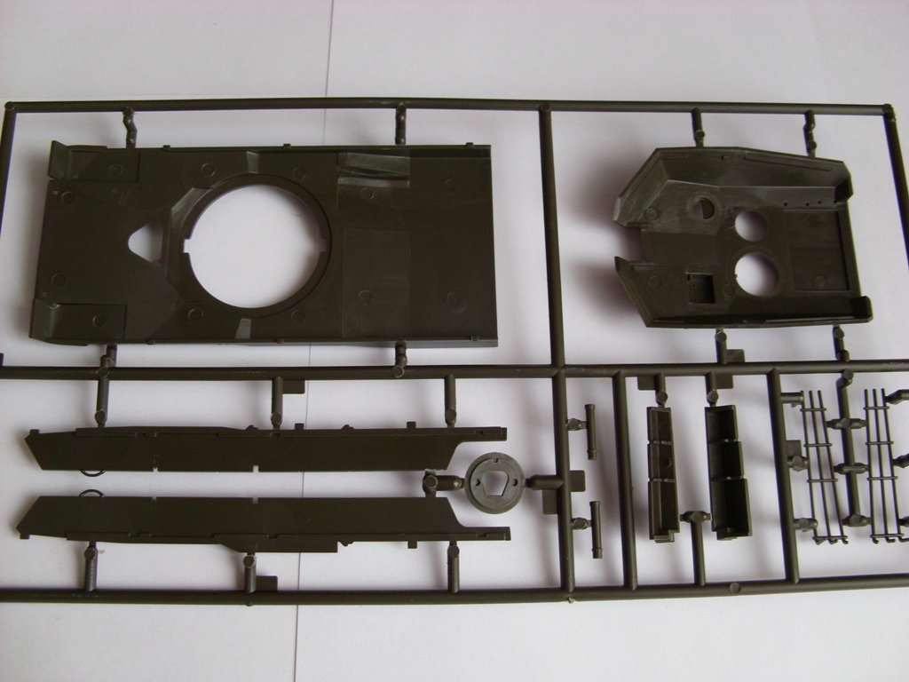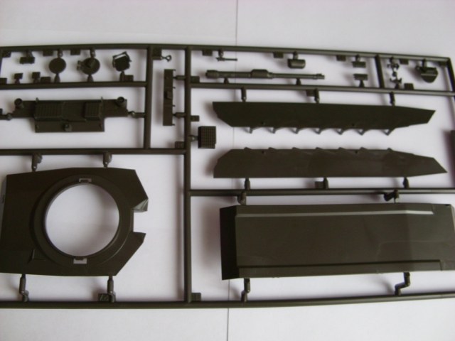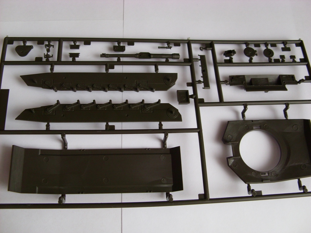 Представляю Вашему вниманию M1 A1 (HA) Abrams от "Revell" (кат. номер 03112). В небольшой чёрной коробке из плотного картона, с качественным боксартом присутствуют 4 литника тёмно-зелёного цвета, инструкция по сборке и декаль на 2 варианта раскраса. Качество отливок на самом высоком уровне. Облоя, утяжин, смещения пресс-форм и прочих "радостей" моделиста не отмечено. Присутствует некоторое количество толкателей, но все они находятся на внутренних сторонах деталей и после сборки они видны не будут. Самые мелкие детали отлиты очень чётко.