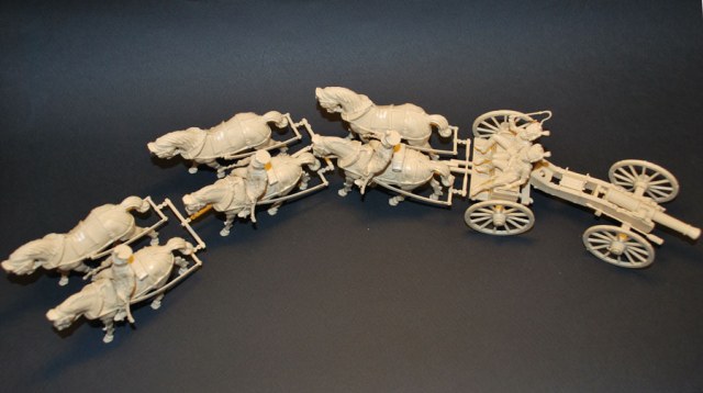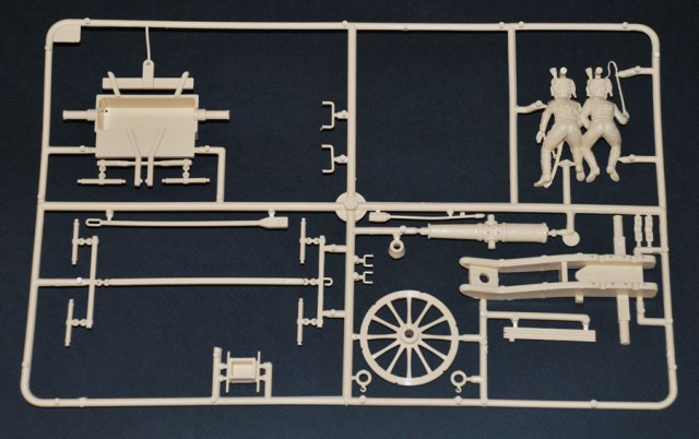 Точная копия набора в 72-м масштабе. С теми же ошибками и косяками. Ошибки перечислять просто нет ни какой возможности, так как они сплошные от ствола до упряжи. Пластик приятный, легко и чисто режется.