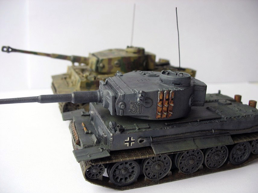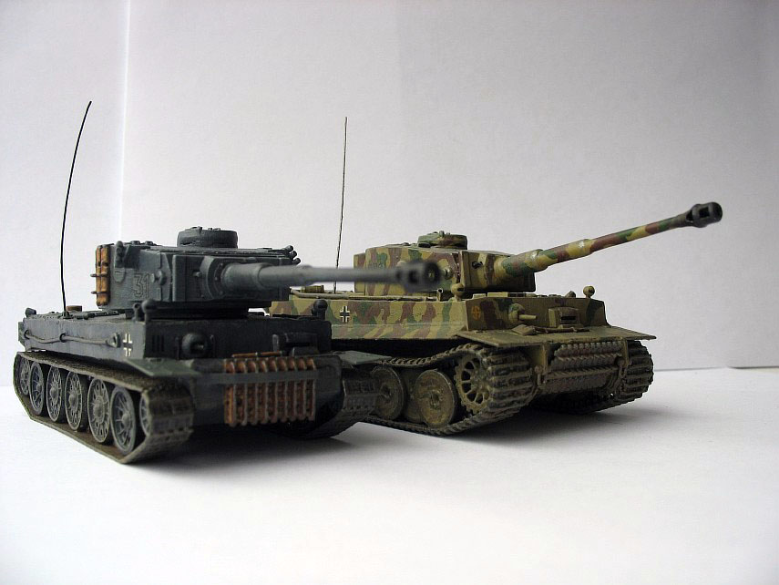 ...На сколько я помню,первый раз ТАКИЕ "Тигры" были показаны в фильме "Горячий снег",где было очень хорошо видны опорные катки и гусеницы Т-34.Также "засветились" "Тигры" в "Они сражались за Родину". Журнал я к сожалению потерял,но картинки хорошо помню.
