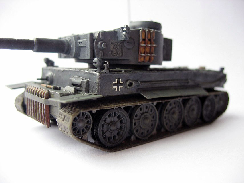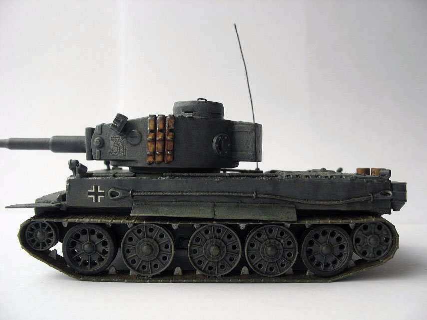 Я уже это говорил, но повторюсь. Таких киношных тигров не было, использование башни от модели тигра испортило модель и нарушило все пропорции. Также не уделено внимания мелочам, сопутствующим названию "мосфильмовского тигра", например щель люка мехвода должна располагаться напротив места мехвода 34ки, а не смещённая в левую сторону, как у настоящего тигра.