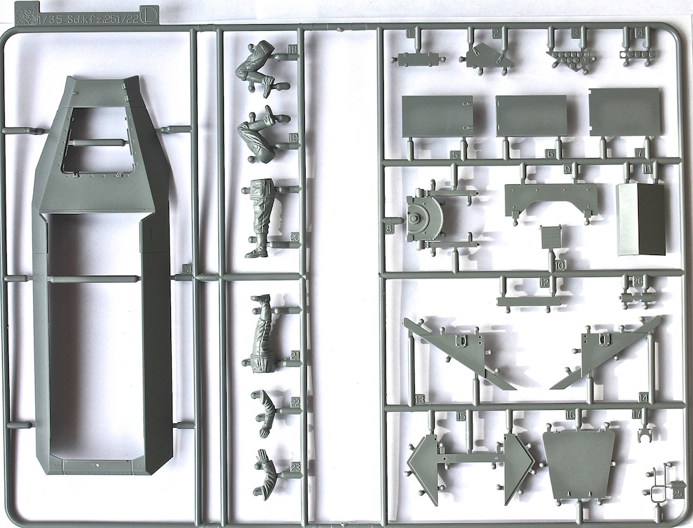Сам набор очень нарядный. Как обычно, огромное количество деталей. Имеется два варианта верхней части корпуса. Не большая плата травления. Металлические усы-антенны на крылья. Наборные, рабочие траки. Много фигурок. Резиновый драйвер. Пластиковый стрелок. Плюс бонус. Набор Anti-aircraft crew, из четырех миниатюр. И еще, кое-чего, по мелочи.
