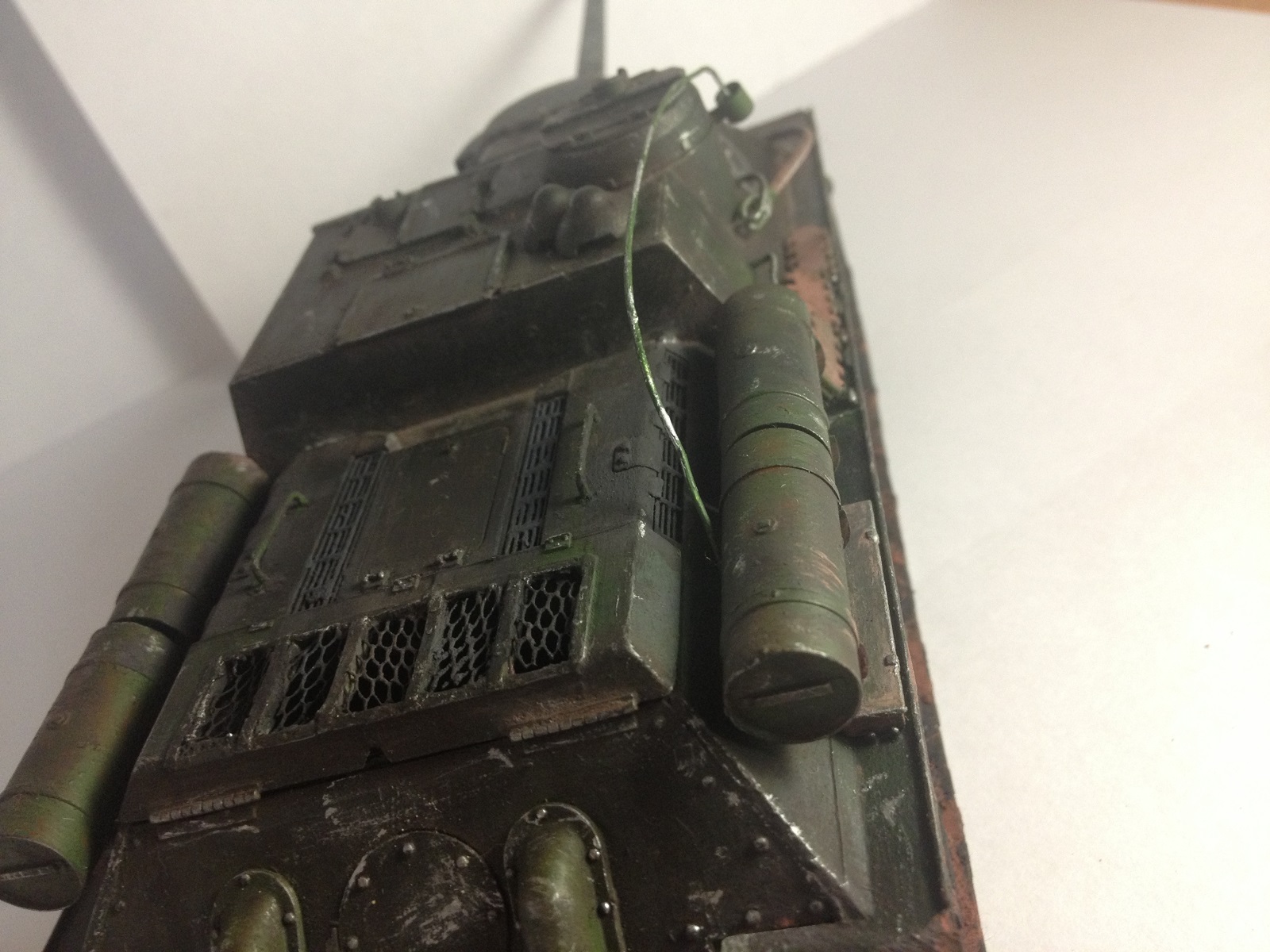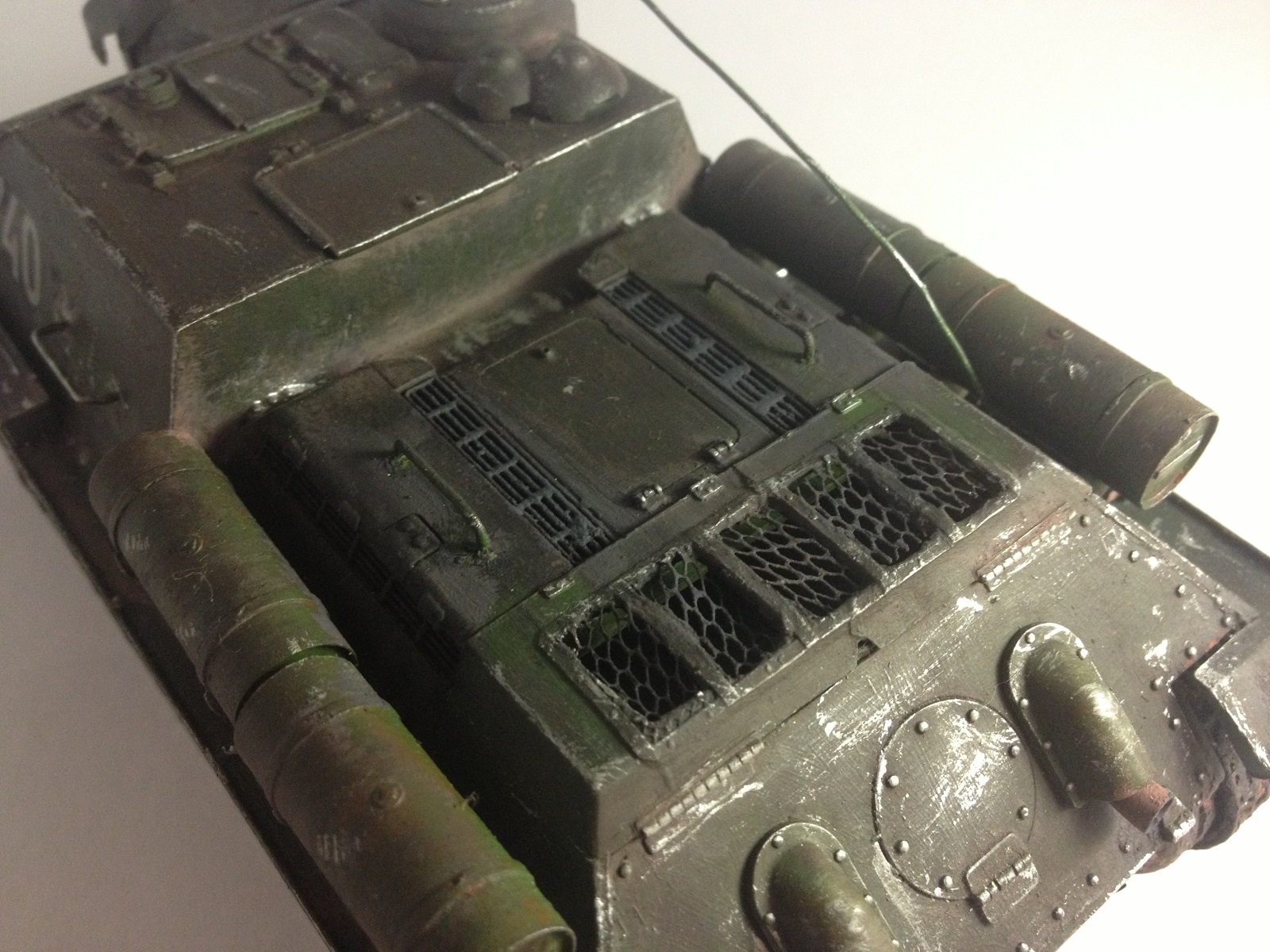 Следы толкателей надо убирать, в том числе и на запасных траках. Использовать "родные" пластиковые поручни, антенны и троса лучше не надо. То же касается и виниловых гусениц. Есть масса вариантов на что их заменить. Москитная сетка в качестве замены вообще не вариант, надо было подобрать что-то более похожее (фото реального образца помогут). Щели тоже модели вида не придают, надо без них обходиться. Ну и аккуратности побольше. Для первой работы сойдет. Удачи в следующих начинаниях!
