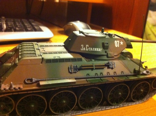 Давно хотел купить себе именно этот танк. Делал с удовольствием, грунт tamiya, краски tamiya xf-72, xf-5 ну и звезда на мелочь.
