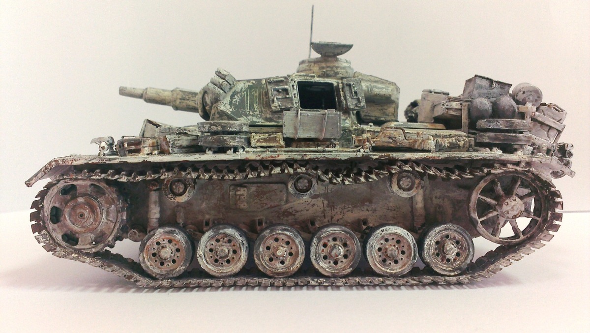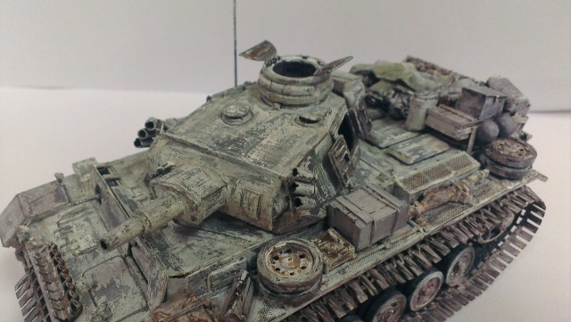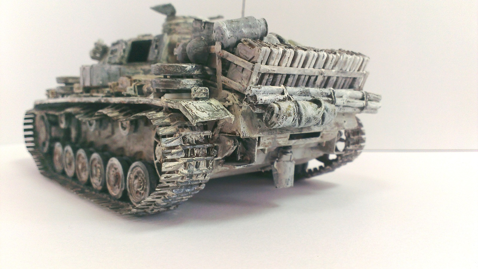 Идея с зимнем камуфляжем доведена до абсурда - он отнюдь не на скорую руку, да и обтерся как-то странно - везде понемножку, как будто немцы немножко ездили, немножко ходили, немножко воевали - такое маловероятно; кроме того куда делась краска\побелка? отпала и рассыпалась? где потеки?