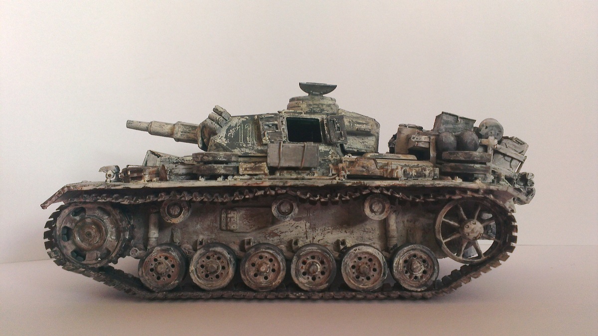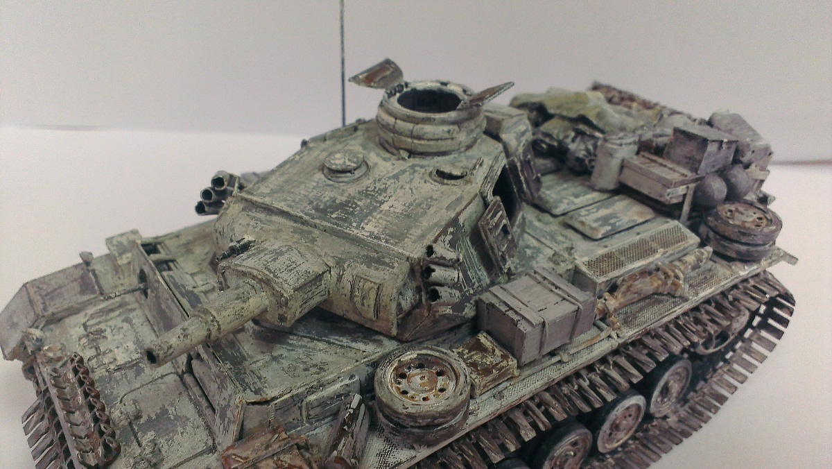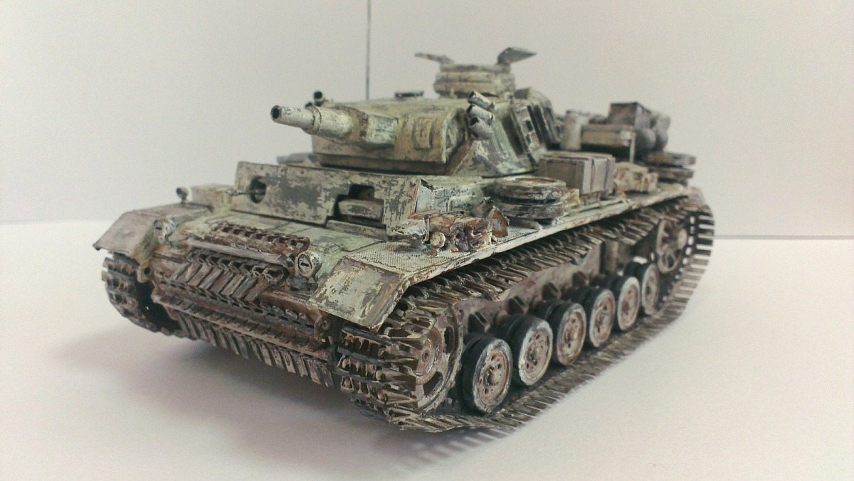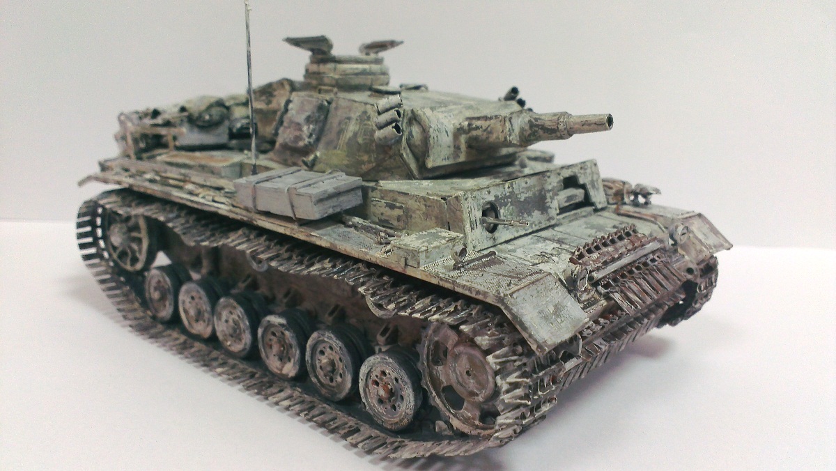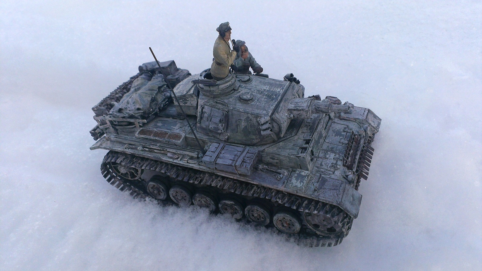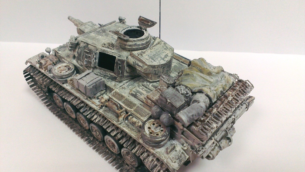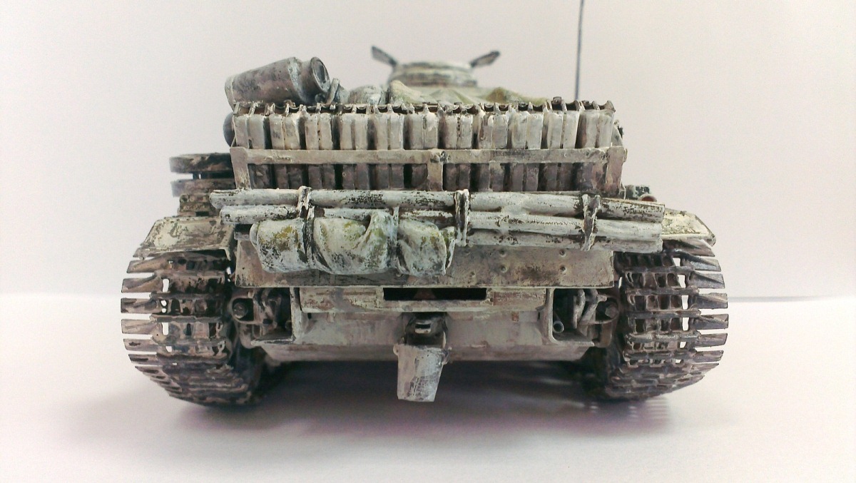 зимний, на скорую руку, сделанный камуфляж очень хорошо передан! не понравились провисы левой гусеницы.