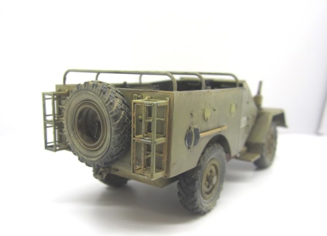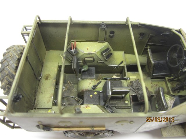 О модели...нет следов открыти передних дверей и на них откидных люках...надобно поцарапать...их часто открывают...трос нужнен...без оружия не очень смотрится...плохо видно - рация у командира кажется есть, надобно антенну....ну и крышевой брезент в комплекте(у нас не Сахара) никто не отменял...