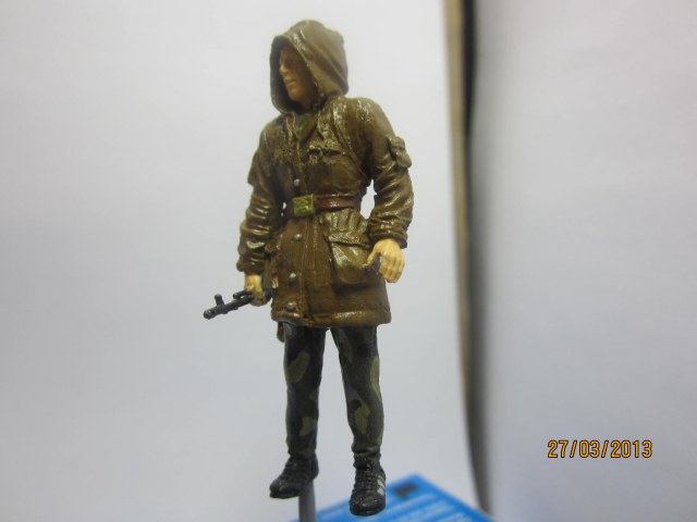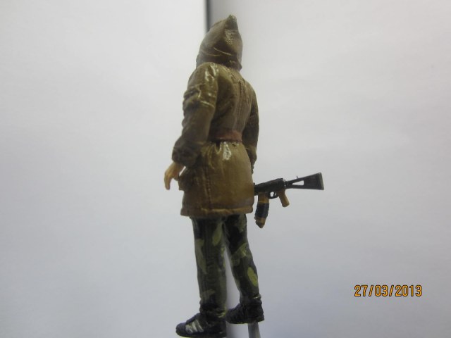 Решил как то заняться пехотой в 35м, и попался мне под руку сталкер от Капитана. Это кстати первая моя модель из смолы. Про сборку говорить нечего, из деталей - 2 руки с автоматом, да тело (ну и пара рюкзаков со всяким скарбом да гитарой которые я не задействовал). Кстати, руки с автоматом не преглянулись, взял от набора звезды 3619 Советские десантники Авганистан.