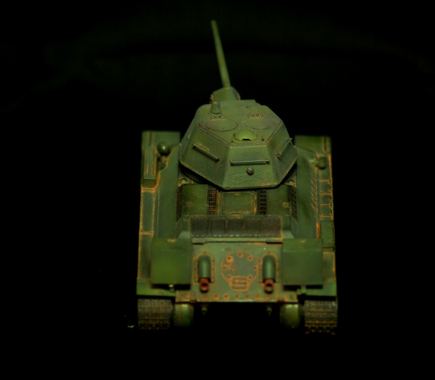 Покраска тонкая, равномерная это плюс, сборка аккуратная достойная, фару то все таки подкрасте и траки на катки уложите как нибудь. Где поручни корпуса?