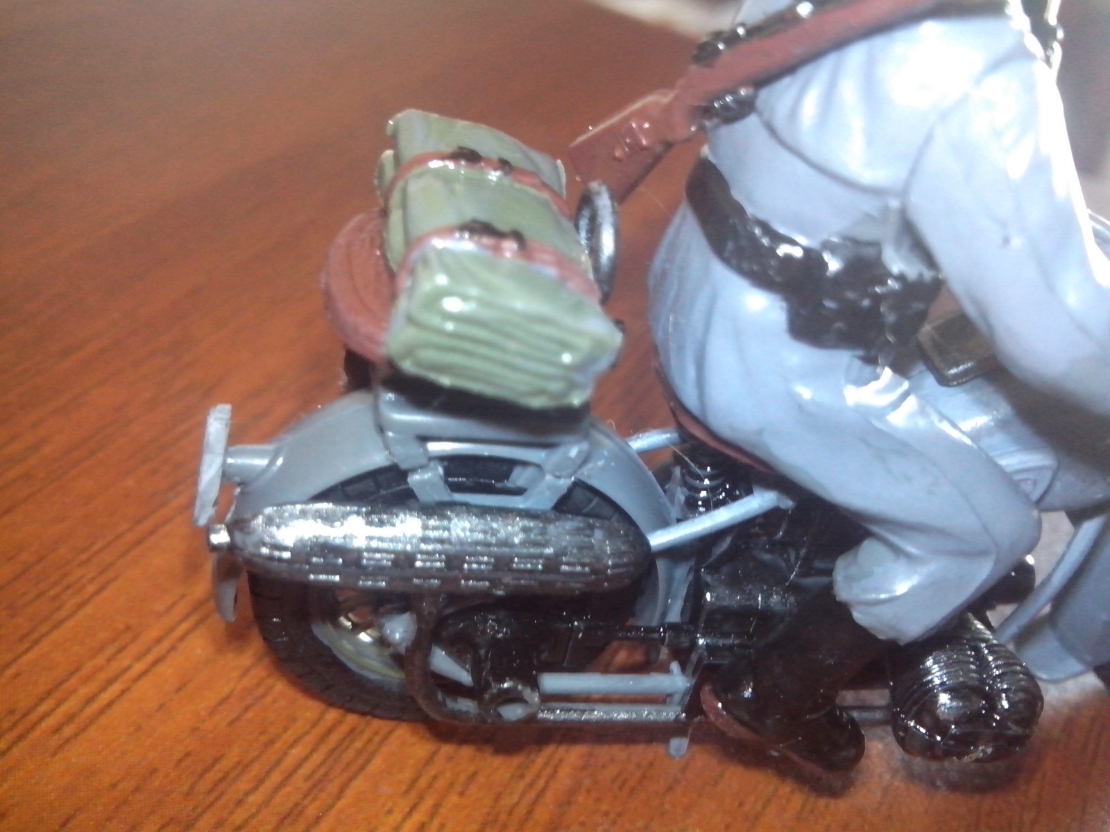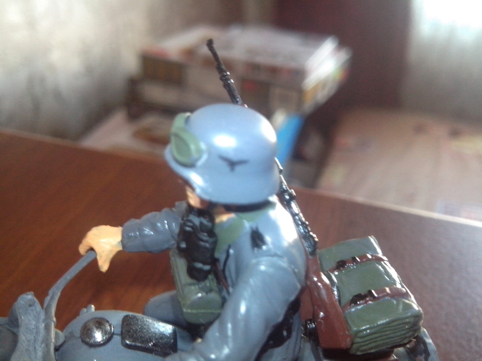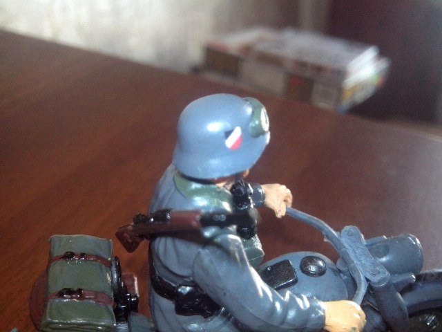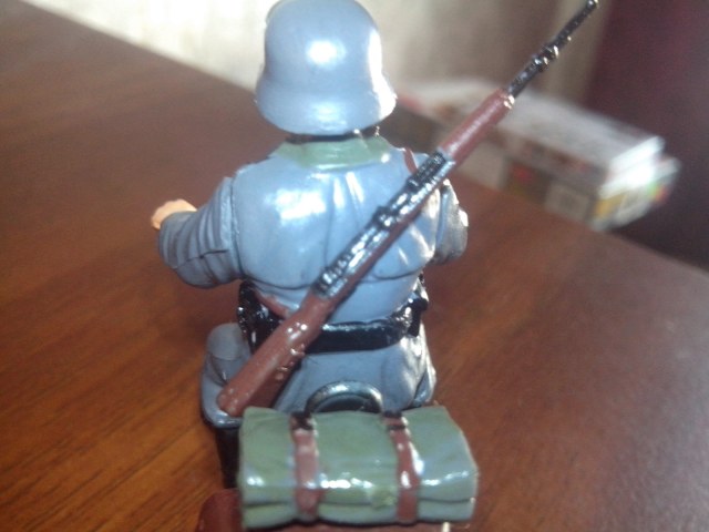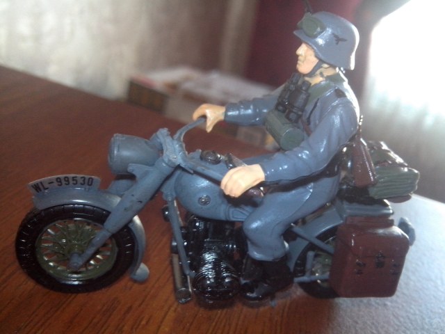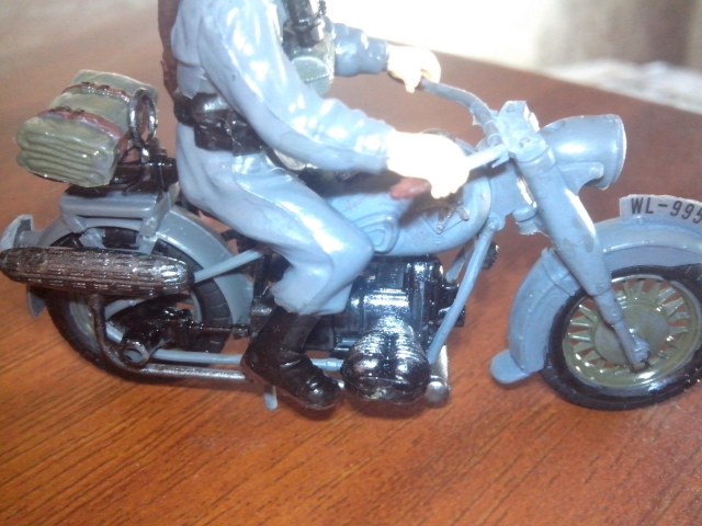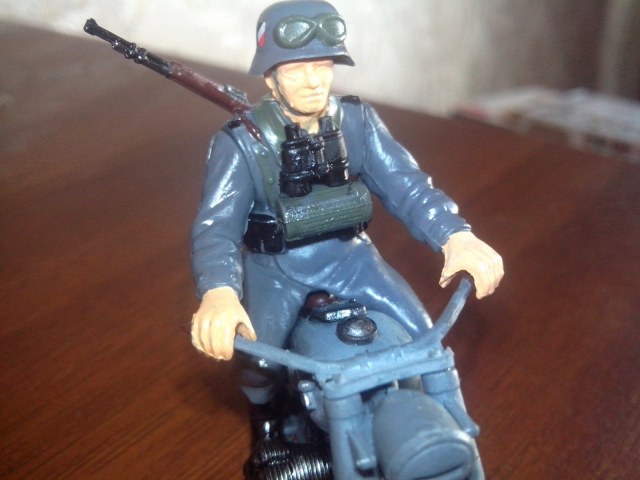 блестит из за вспышки (на телефон снимал) есть идейка окунуть его в коричневую краску только голову немца оставить и подписать немецкий мотоцеклист в советской грязи.....