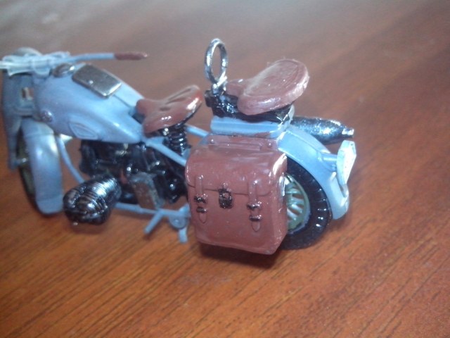 А вот плащ водителя напрасно в один цвет с мотоциклом покрасили получилось все однотонно.Покрасили бы его хотя бы XF-65 лучше бы смотрелось.Старайтесь краску пожиже разбавлять,меньше такого глянца будет.