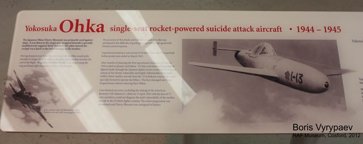 Очередной экспонат, Yokosuka MXY7 Ohka, из Музея Королевских ВВС в Косфорде.