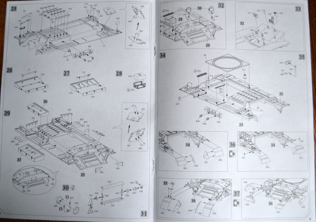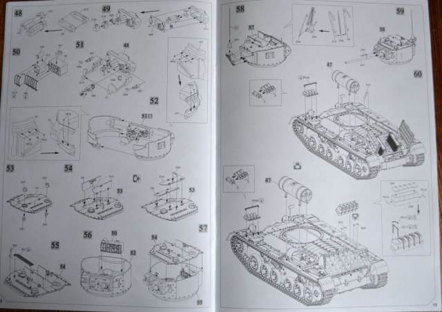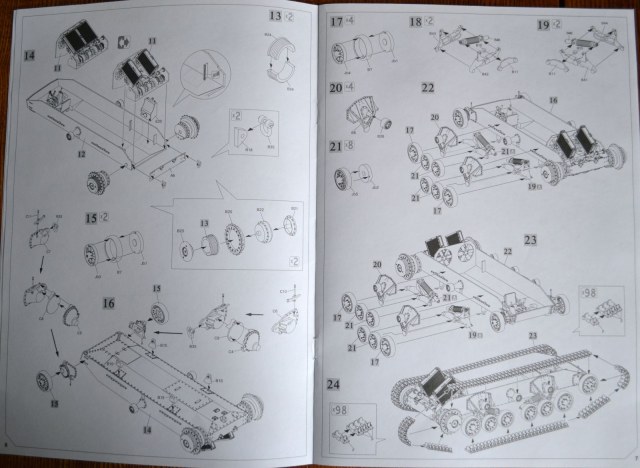 Инструкция ( на 16 стр.) предлагает собрать 7 вариантов танка с закрытыми или открытыми люками.