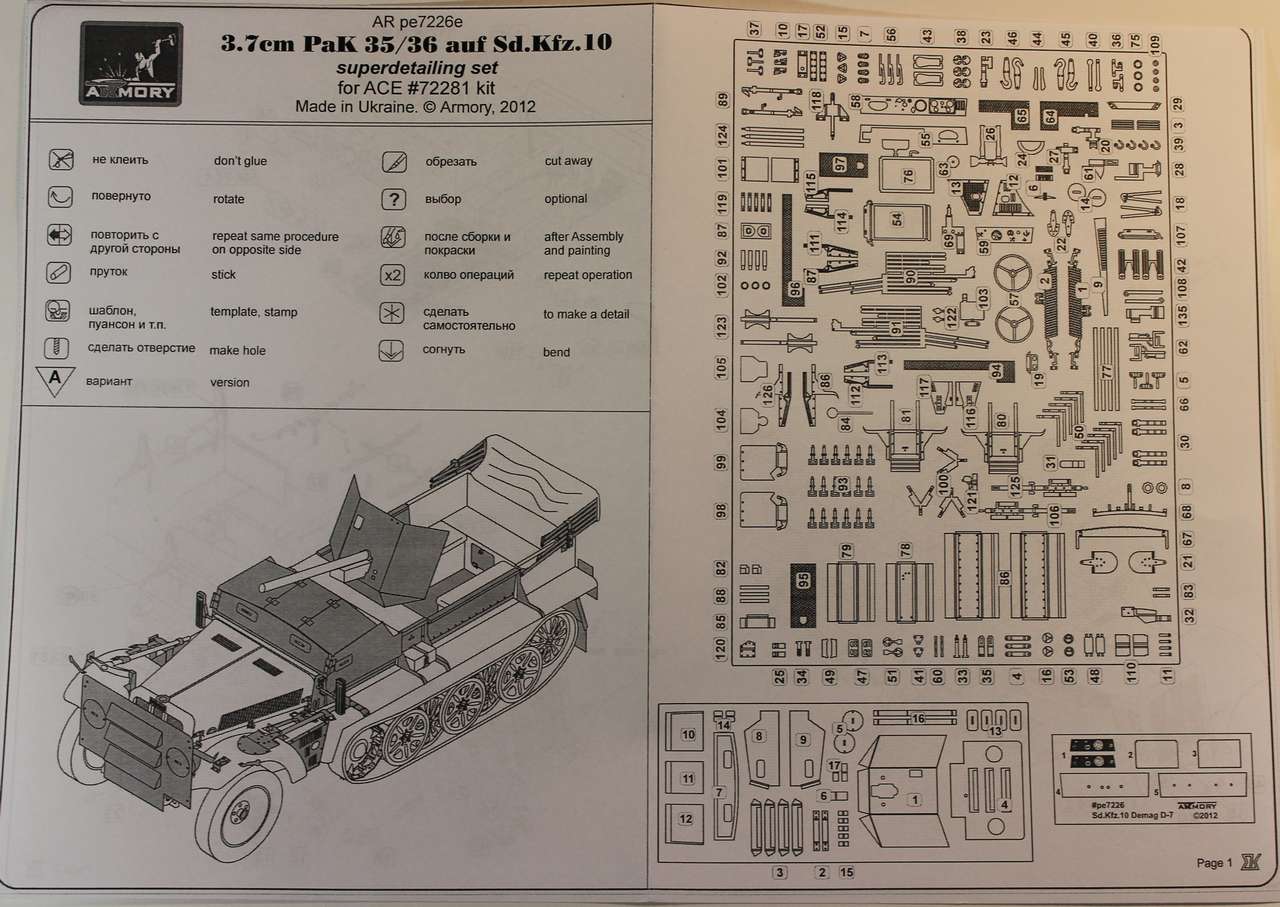 SdKfz 10 с пушкой pak 36, модель украинского производителя лнд, производит довольно хорошее впечатление не смотря на облой, литье без смещений, пластик темный, достаточно жесткий, утяжины легко устранимы, вообщем у любителей лнд проблем быть не должно, выкладываю вместе с травлением от Armory т.к. один из интернет магазинов предлагал его в коробке с машиной как рекомендованный товар. надеюсь обзор будет полезен. хотелось бы услышать мнения коллег, кто сталкивался с такими резино/пластиковыми гусеницами, действительно ли они со временем травят пластик даже через слой грунта на них и катаках?