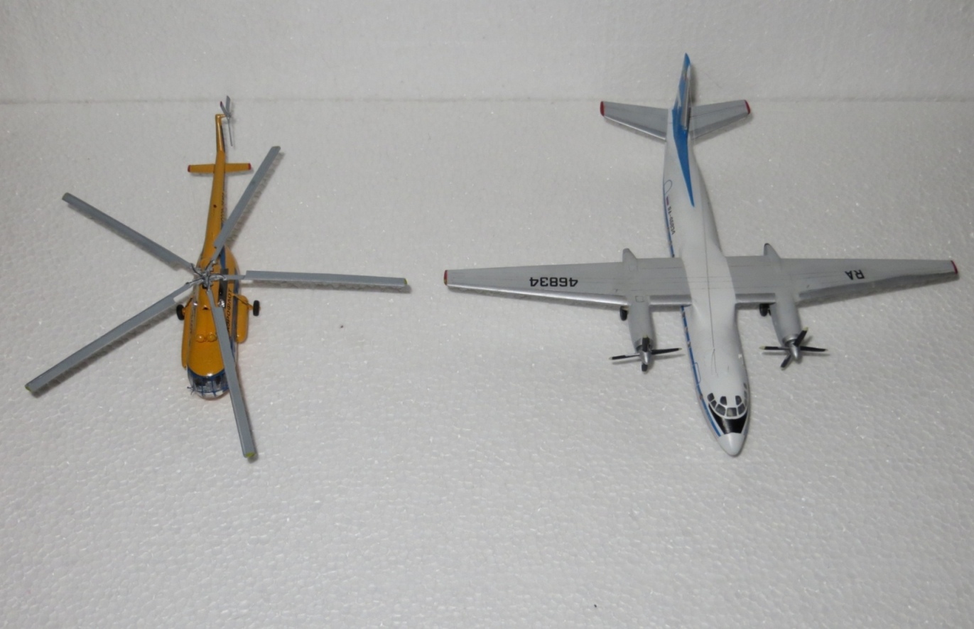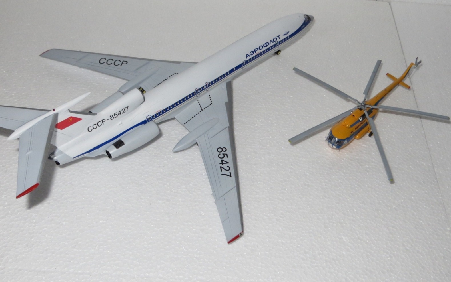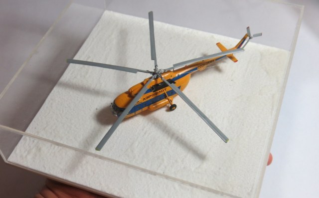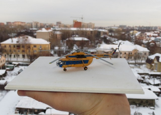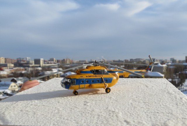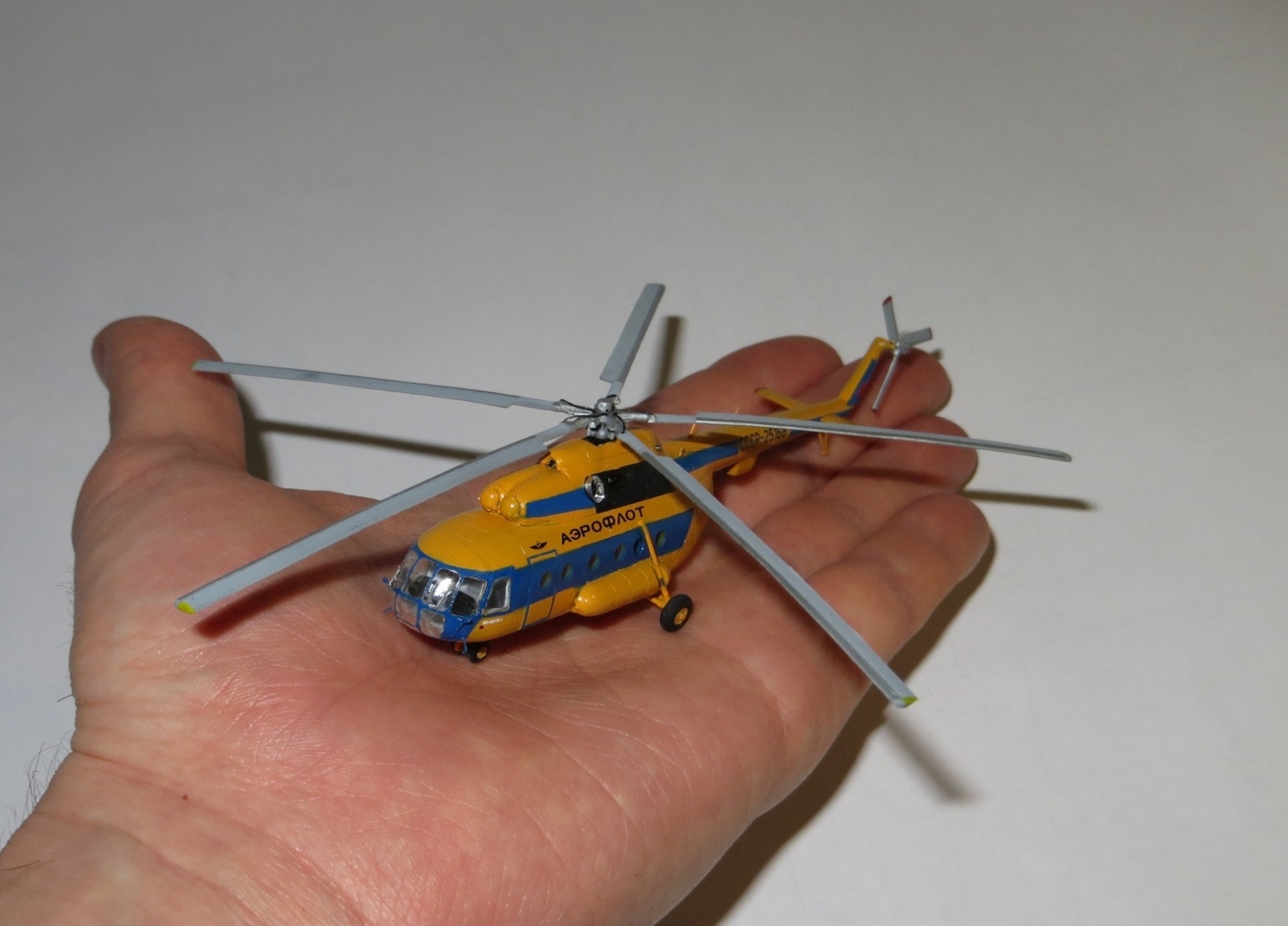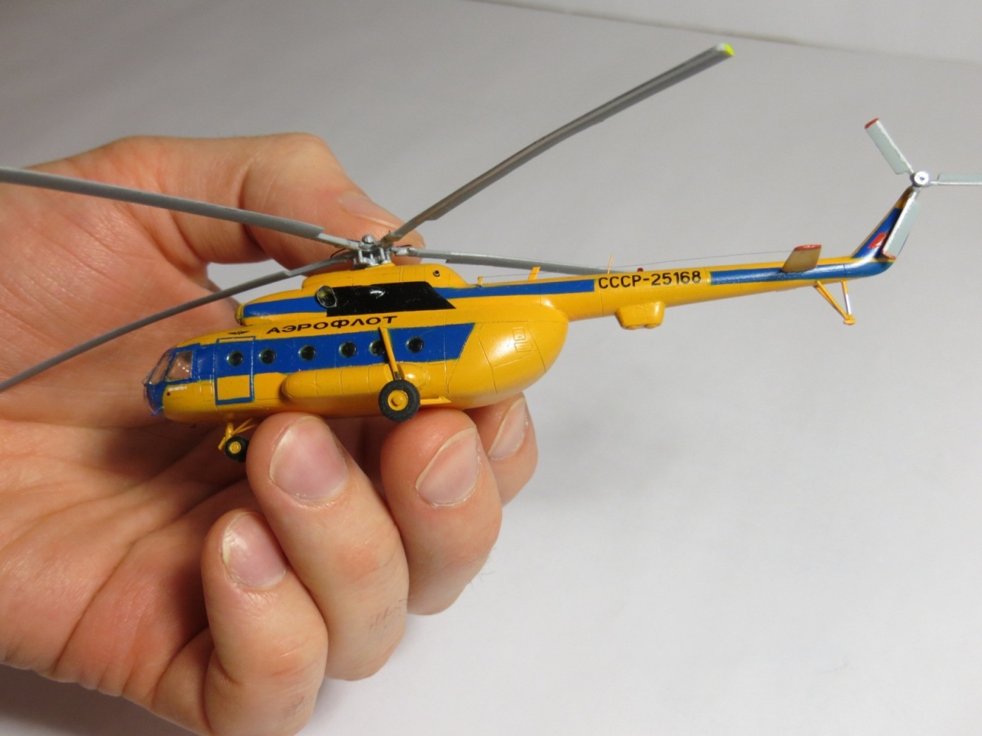 Вся модель выкрашена красками, декаль - птичка аэрофлота, надписи аэрофлот, бортовой номера, флаг СССР и надпись Ми-8МТВ-1.
