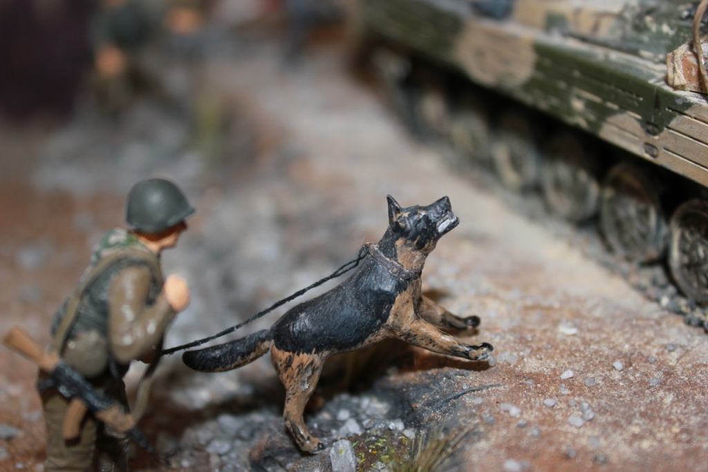 Неплохо если это первая диорама, над позами получше поработать, приколол автоматчик который целится в караульного, мол открывай , а то замочу