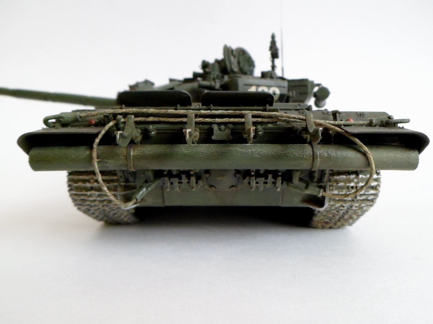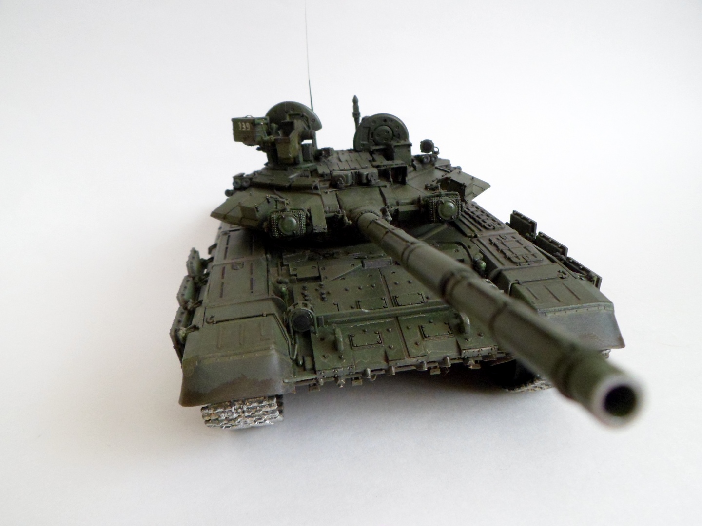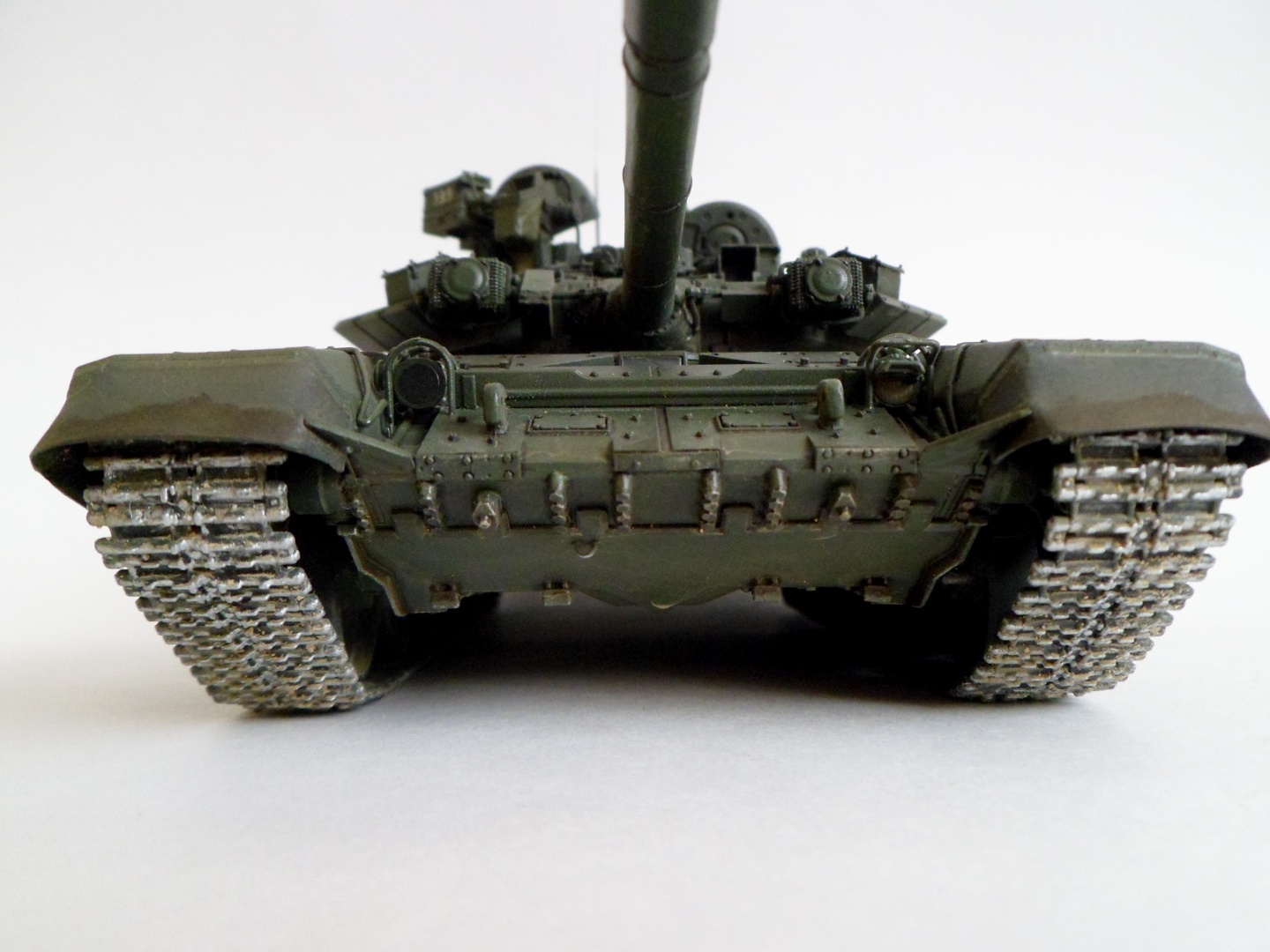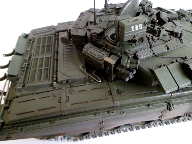 Гусянка начинает блестеть очень быстро, только не на асфальте там как на фото только грунтозацепы блестеть будут и беговая дорожка , + перед парадом их накрашивают! Этот вопрос уже обсуждали на моей модели Т-54. И фото с блестящими гусянками Т-90 достаточно.