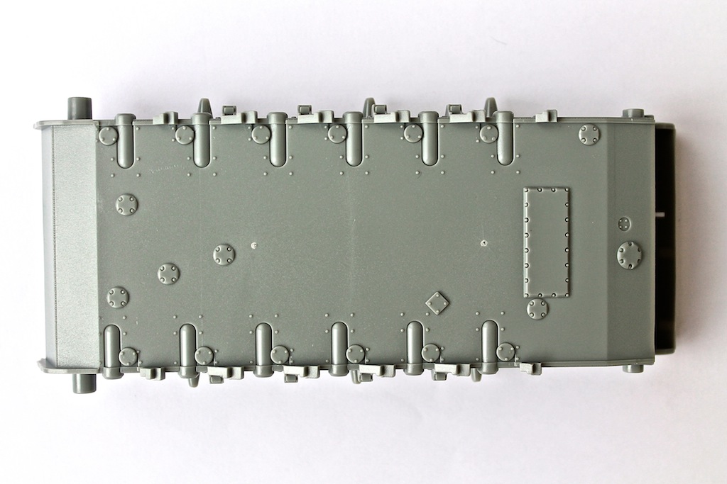 Первая мысль, всячески и всевозможно дополнять модель. Но при ближайшем рассмотрении понимаешь, что дополнять здесь, особо, не чего. Боевая рубка вся гладкая. Ни какого обвеса нет. Если только ящик на корме? О креплениях шанца не говорю. Это само-сабой.