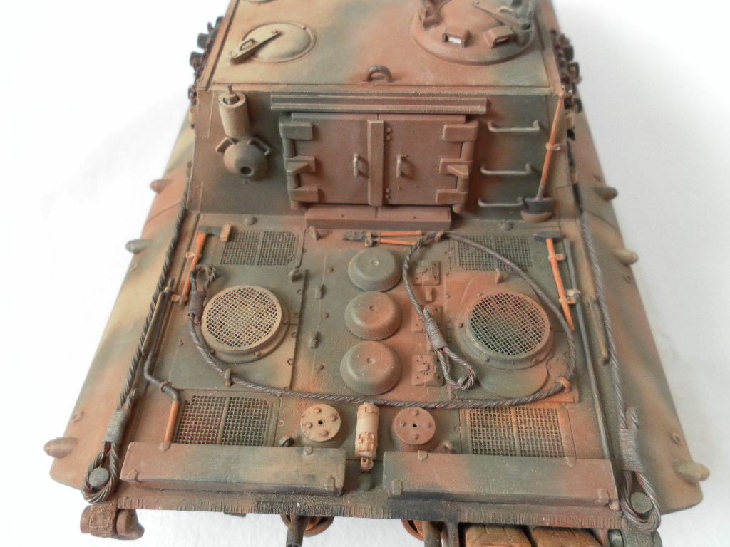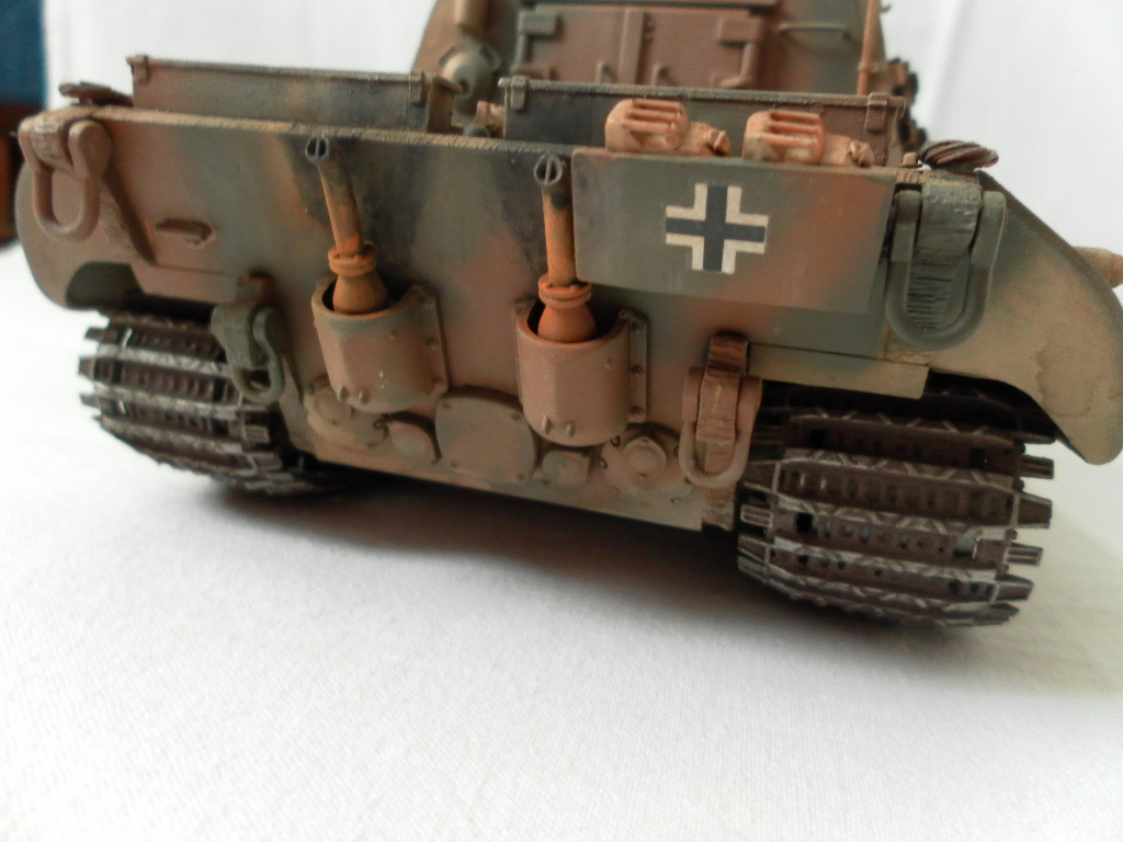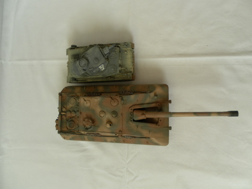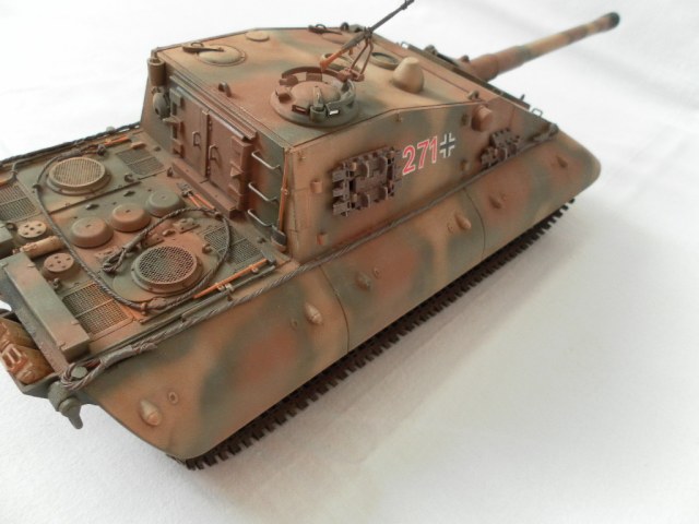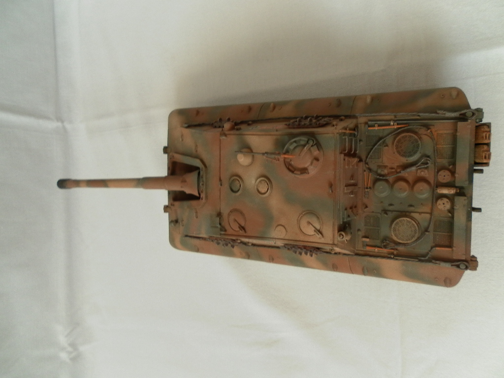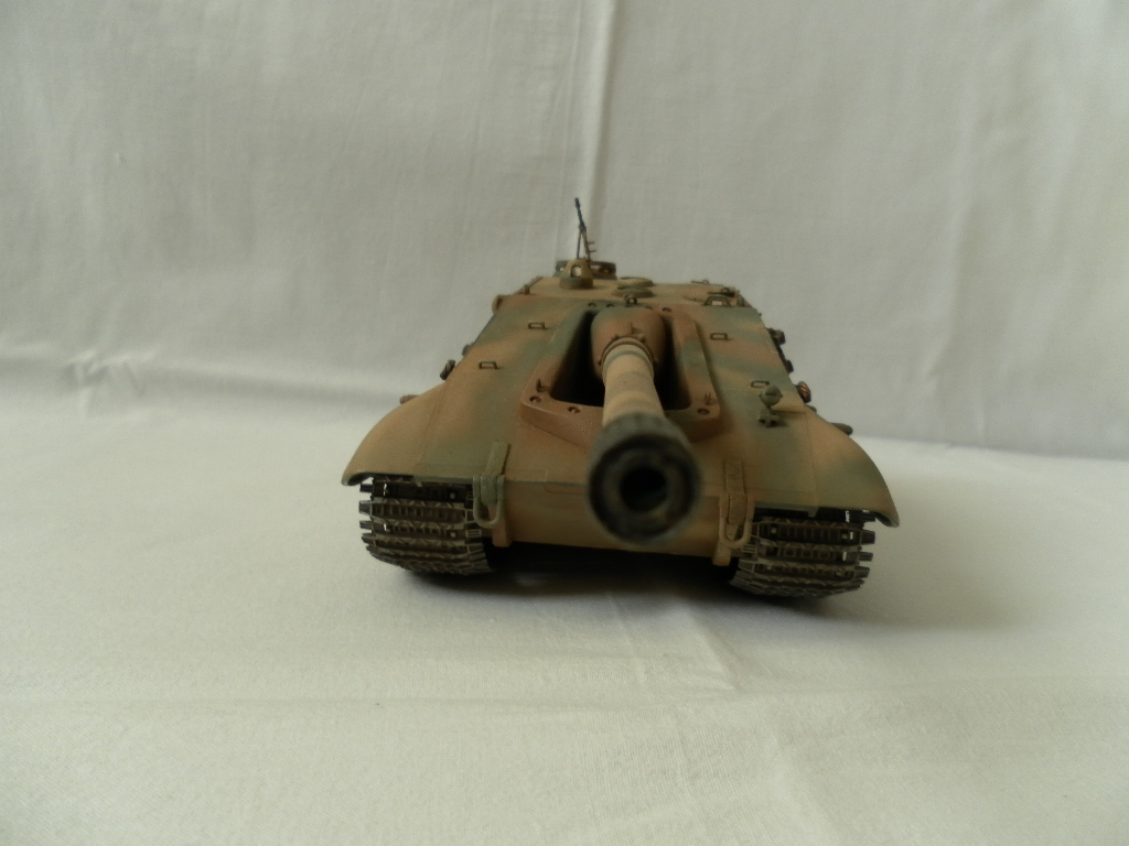 Представляю собранную мной модель немецкой САУ на базе танка Е-100. Данный танк был только на бумаге и говорить о мат части не приходится. Сборка порадовала, отличная стыкуемость, нет облоя и утяжин. Были только проблемы с катками. Гусеницы хорошого качества, только из-за плохого расположения в коробке были слегка помяты. Сделал небольшие дороботки, т.к по инструкции он получался слишком простеньким. Внушает своими размерами. Впервые пользовался технологией масляных точек.