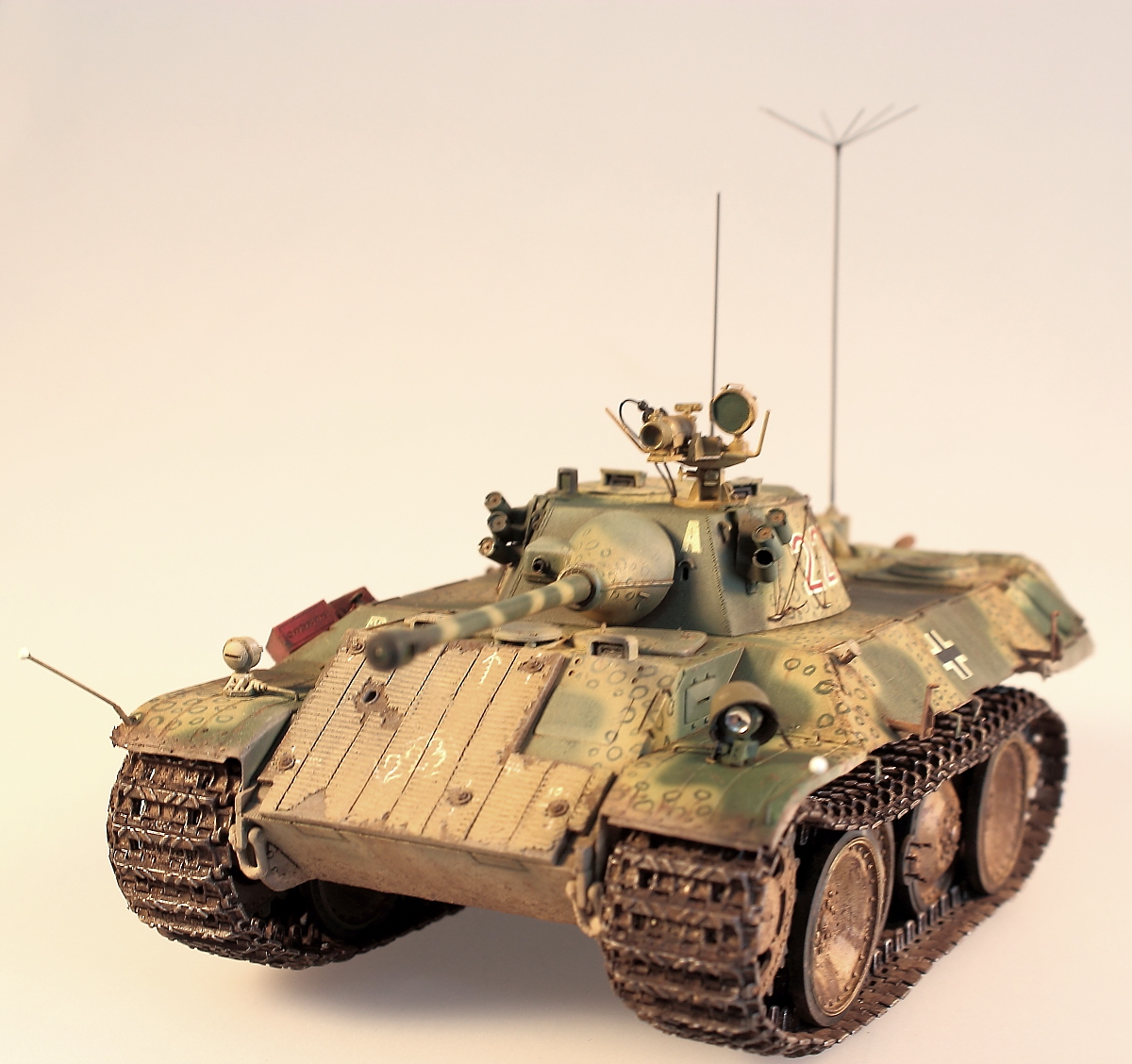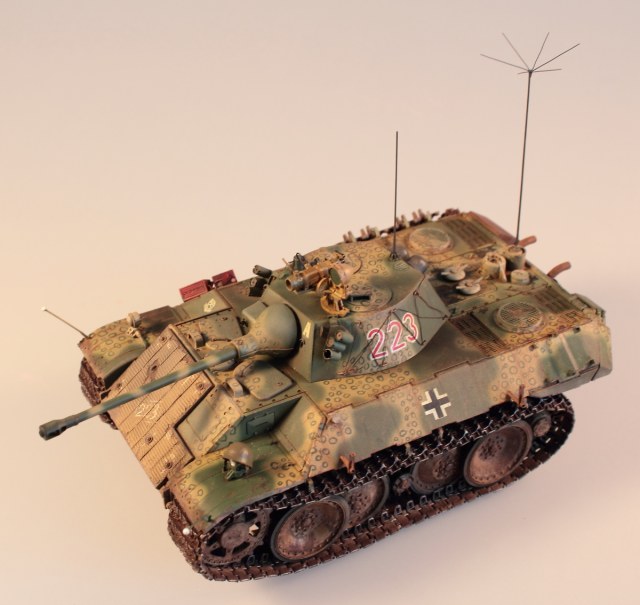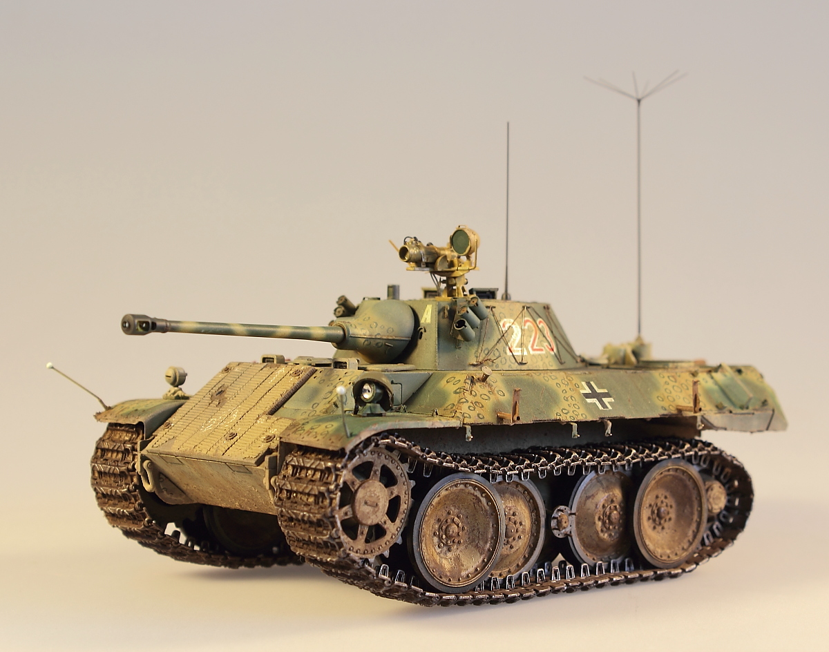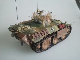 Катки и гусеницы использованы от драгоновской пантеры. Модель покрашена акрилом от тамии, работал поверх маслом, немного пигментов от миг и в общем то все.