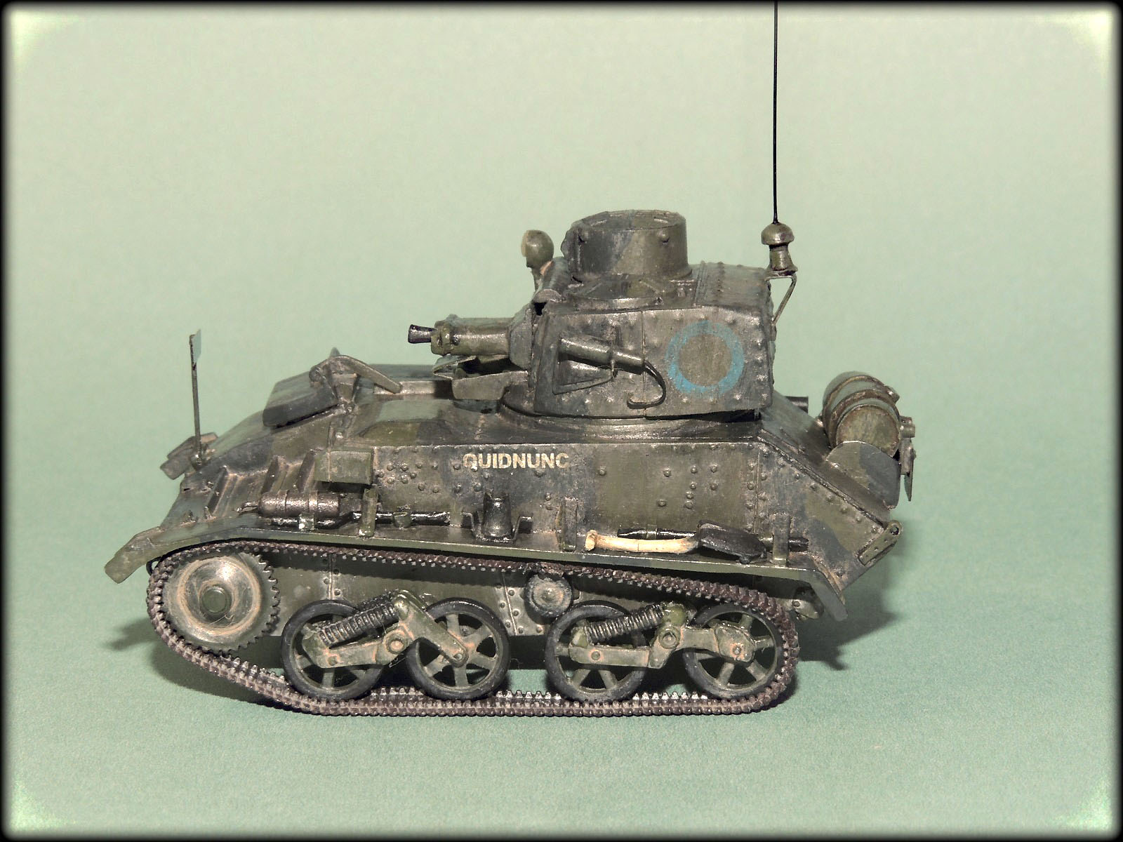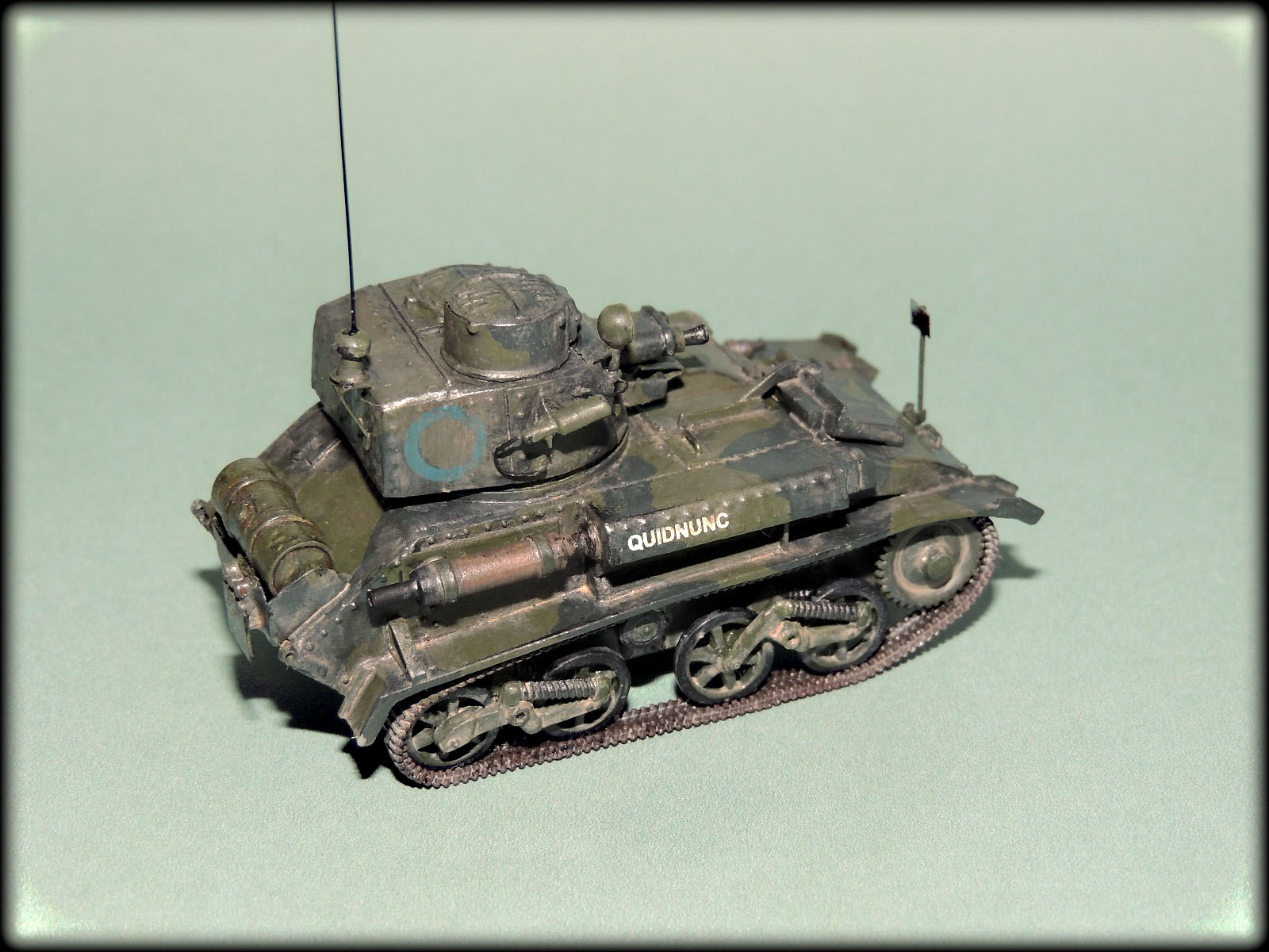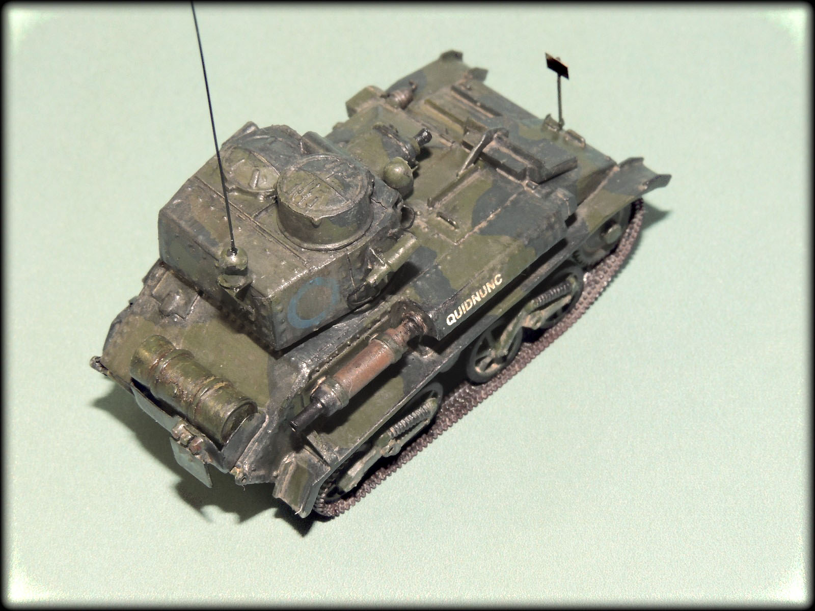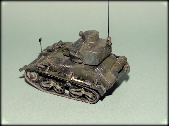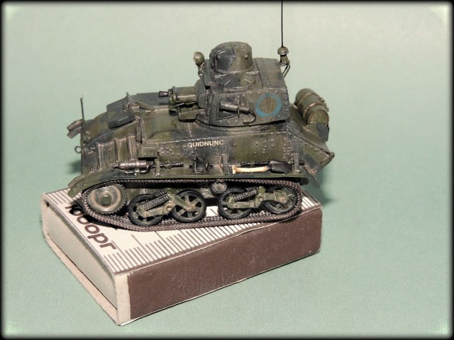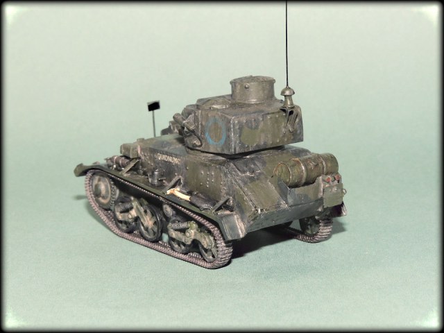 Михалыч,у этих малышей(у англичан это не танкетки а лёгкие танки),у каждого полка,был свой камуфляж.Этот с поперечными тёмно-зелёными пятнами как раз и относился к 1-му Восточно-Ридингскому полку Йоменов.Кроме того, вариантов "камо"к этим машинам,оказалось множество,начиная от простого "хаки",кончая трёхцветным геометрическим.