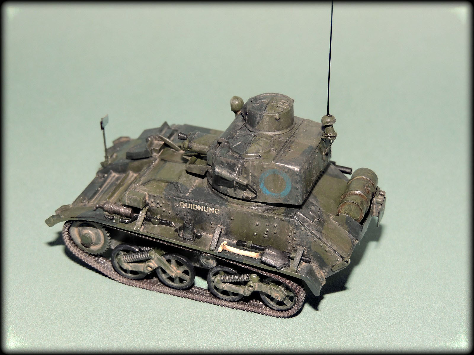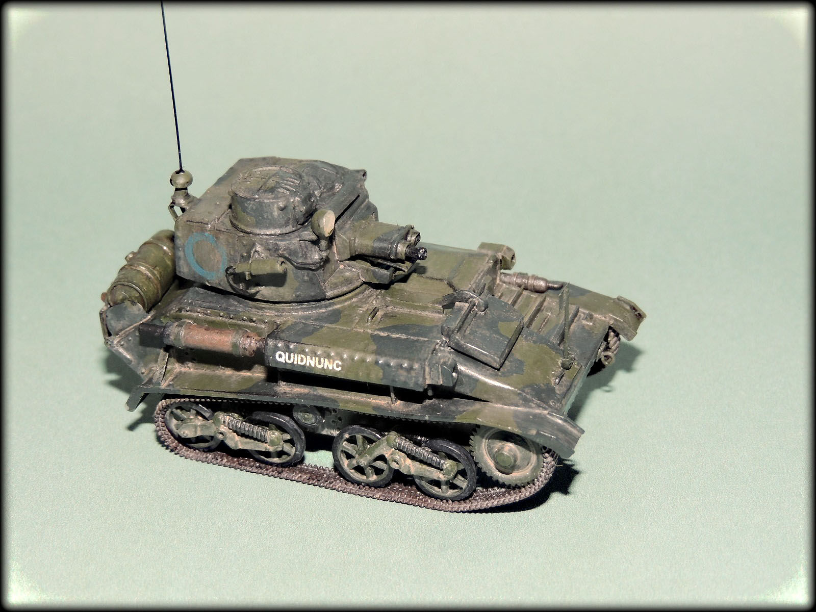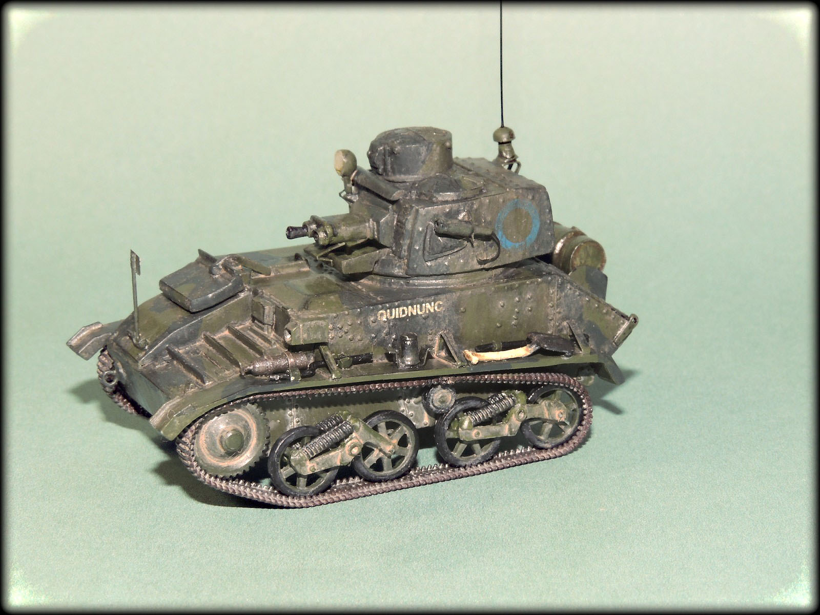 Михалыч,у этих малышей(у англичан это не танкетки а лёгкие танки),у каждого полка,был свой камуфляж.Этот с поперечными тёмно-зелёными пятнами как раз и относился к 1-му Восточно-Ридингскому полку Йоменов.Кроме того, вариантов "камо"к этим машинам,оказалось множество,начиная от простого "хаки",кончая трёхцветным геометрическим.