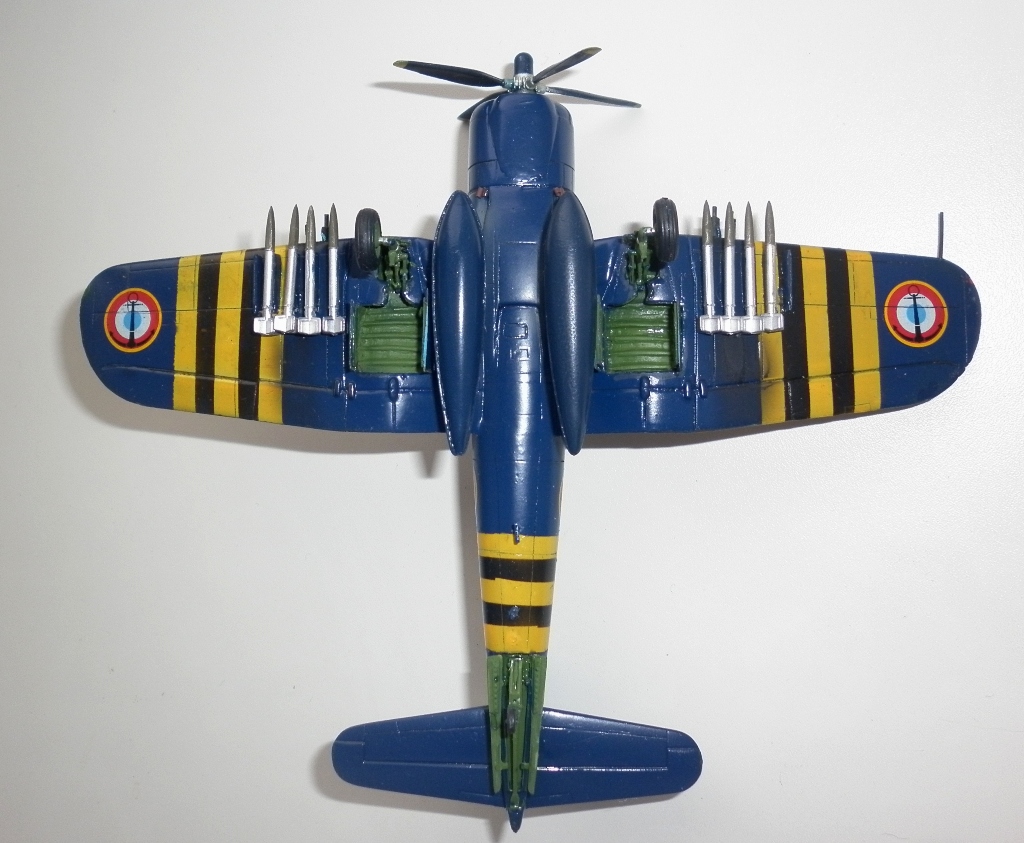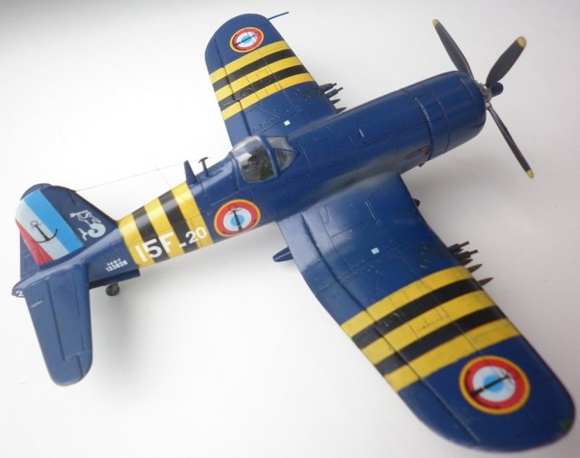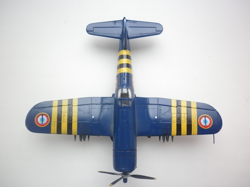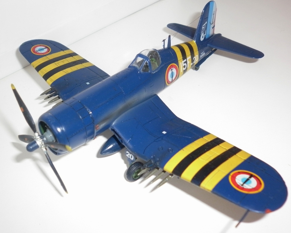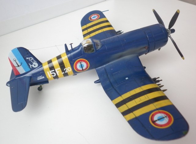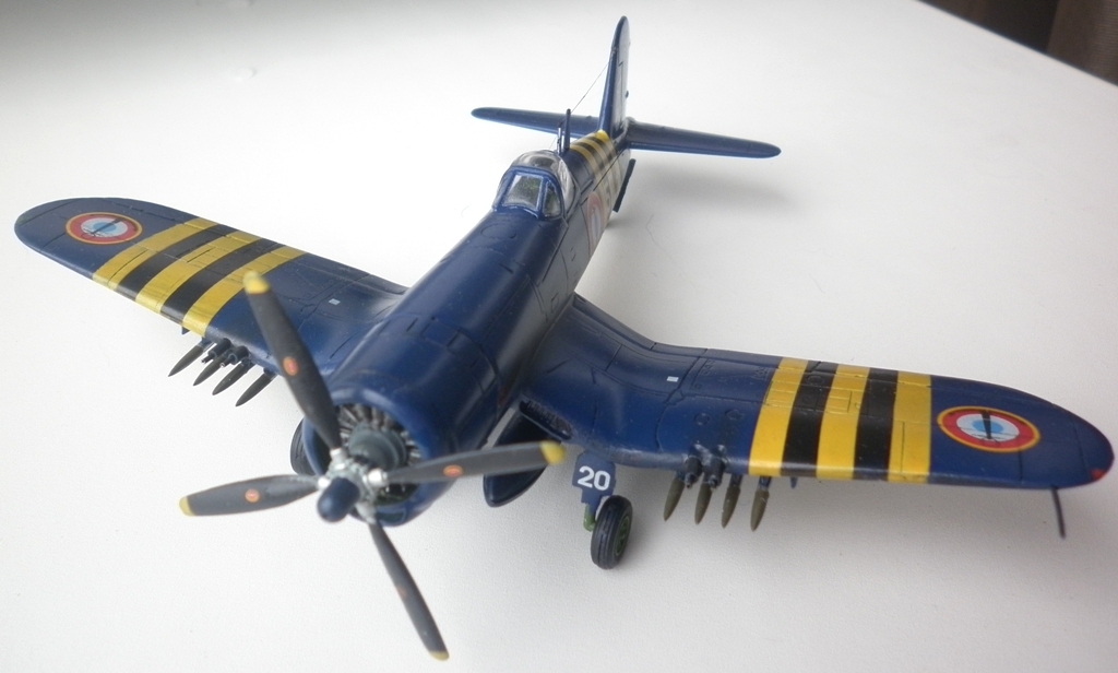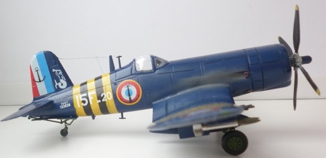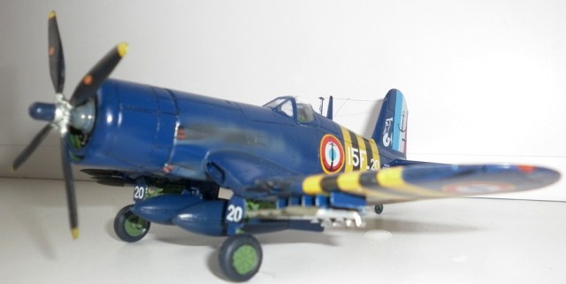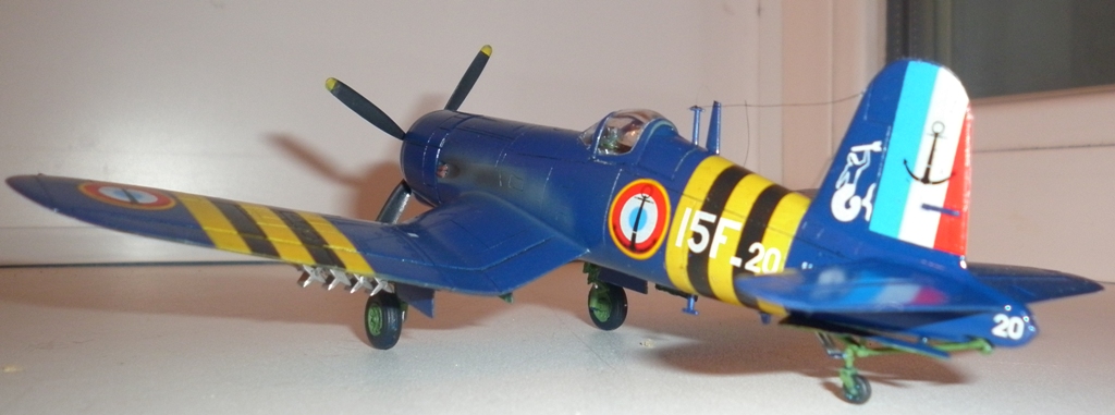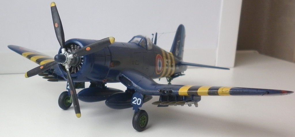 И ещё. Аннотация к модели предлагает красить стойки шасси в хромцинк, но на всех фото сохранившихся корсаров ВВС Франции стойки стального цвета.