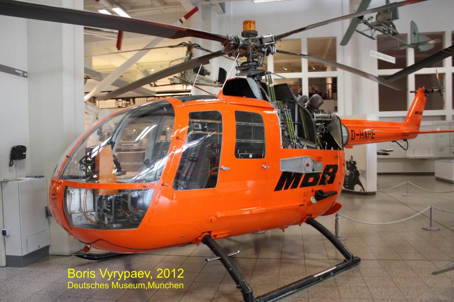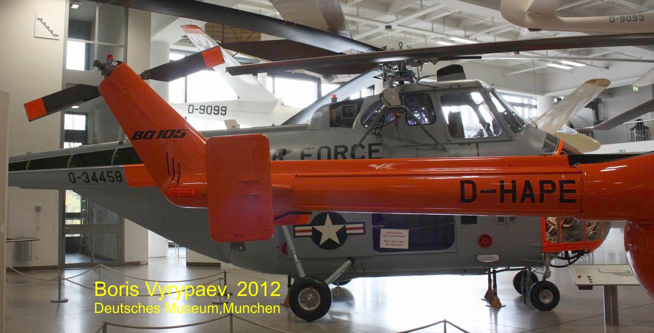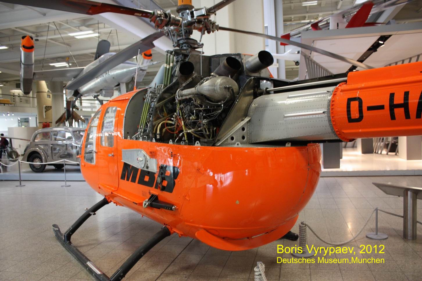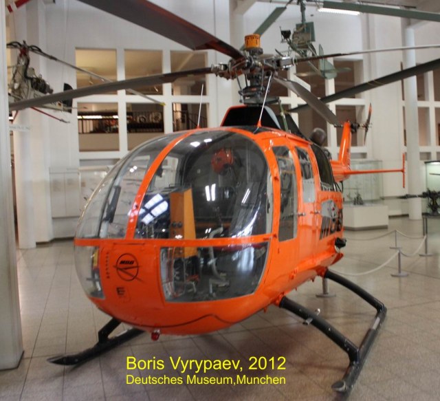 Очередной экспонат - Messerschmitt-Boelkow-Blohm Bo-105 из Deutsches Museum в Мюнхене — немецкий многоцелевой и ударный вертолёт. Выпускается в военных и гражданских модификациях.