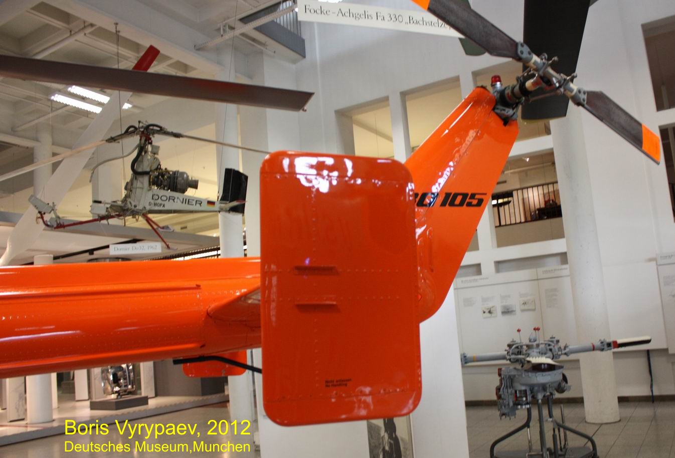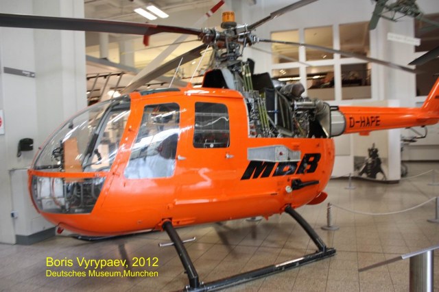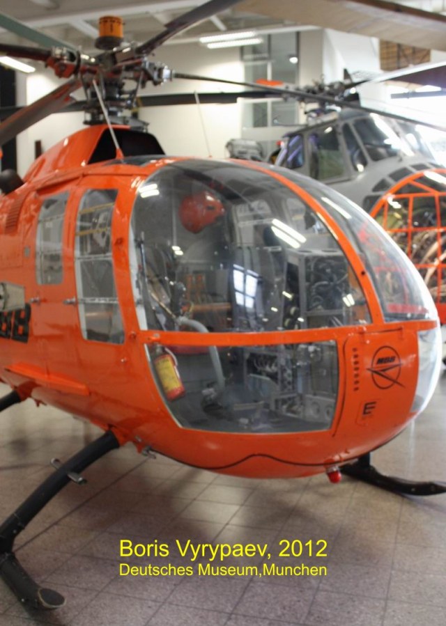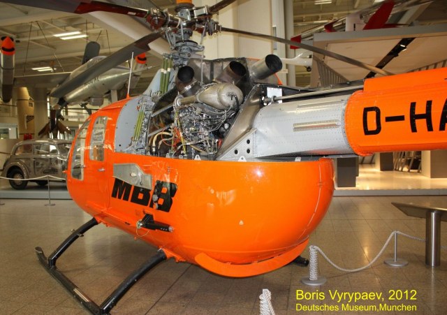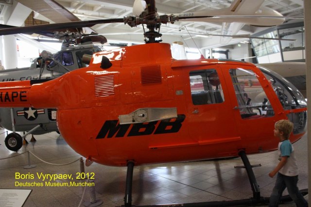 Очередной экспонат - Messerschmitt-Boelkow-Blohm Bo-105 из Deutsches Museum в Мюнхене — немецкий многоцелевой и ударный вертолёт. Выпускается в военных и гражданских модификациях.