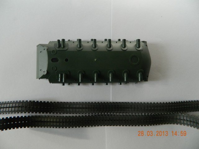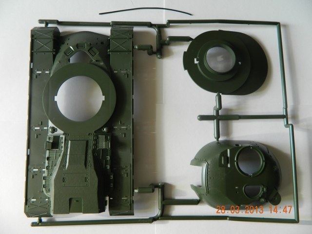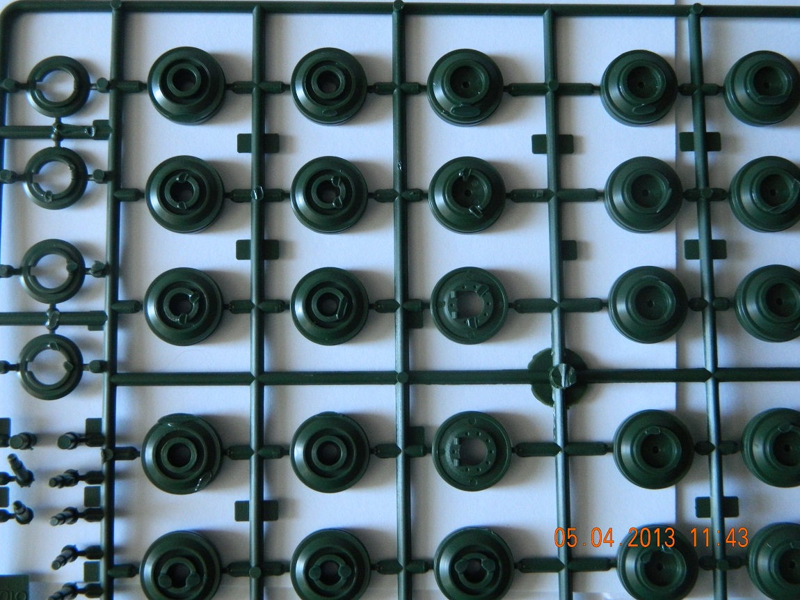 В наборе в общем 8 литников, один из них литник резиновых бандажей,качество отличное, облоя и утяжин не обнаружил,но без мелких недразумений не обойтись-виновник литник бондажей, который был спресован с другим литником,когда всё это дело разобрал,то увидел следы нагрева на катках, да и на всём литнике в целом,а на литнике резиновых бондажей ни следа(см. фото).Ещё в набор входили ванна и гибкие гусеницы,в общем нареканий не вызвали,единственное что может вызвать копийность последних.