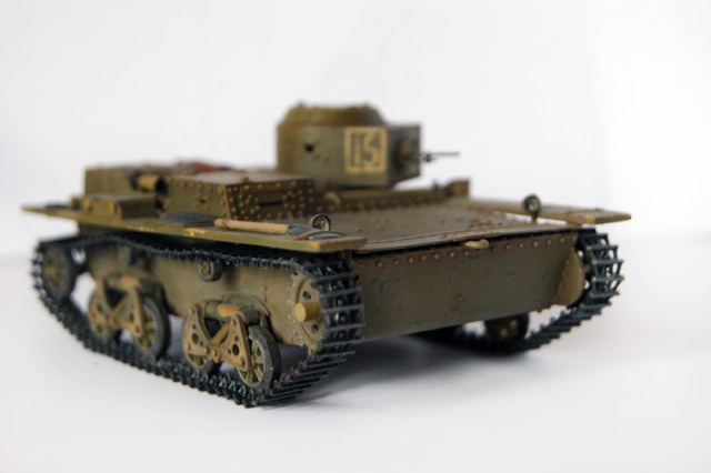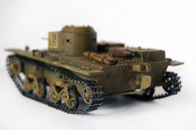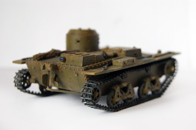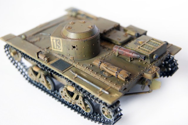 Предлагаю вашему вниманию очередную свою модель. Т-38 от восточного экспресса, Макет пошел на донора, а именно ходовая и башня. Качество мягко говоря не очень. Все переделки описывать не буду, о них можно почитать в СКАЗКЕ. На сборку модели ушло пол года. Красил аэрографом, краски АКАН. Скатка из бумаги. Пылил пастелью.
